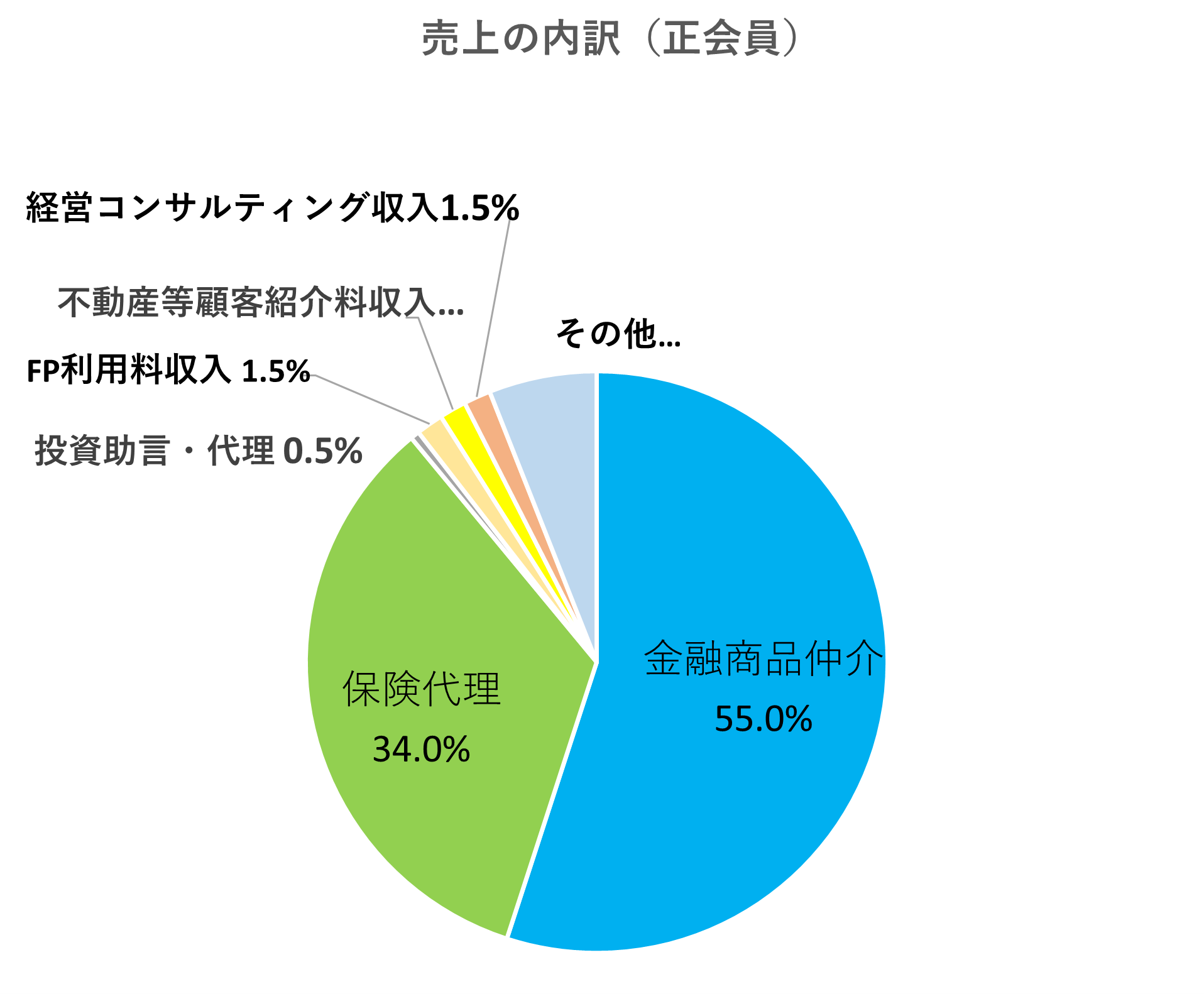 ◆正会員における売上の内訳は、金融商品仲介が55%、保険代理からの収入が34%。