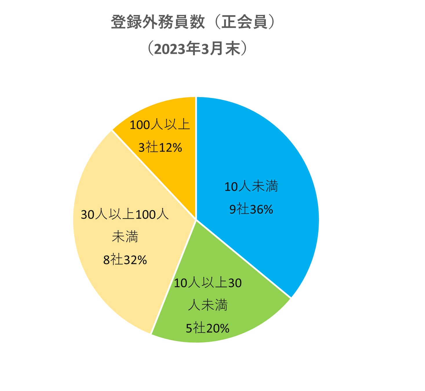 ◆正会員における登録外務員数は、30人未満の企業が約半数。
