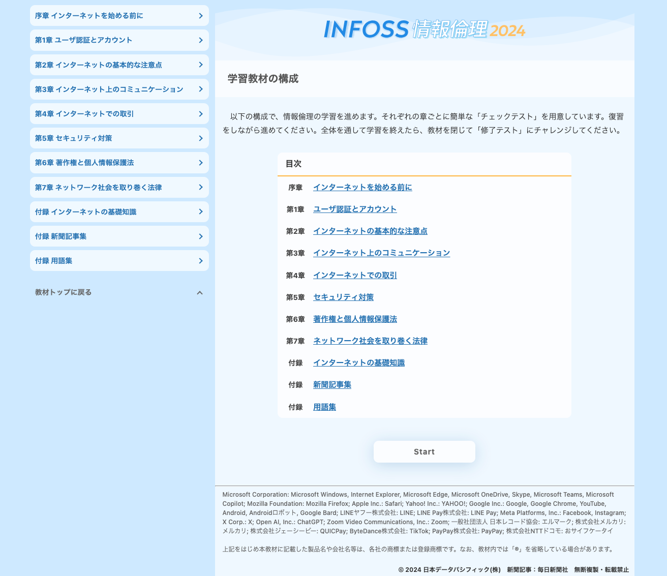 「INFOSS情報倫理」は、毎年春に新しいバージョンをリリースしています。基礎知識などのベースはそのままに、