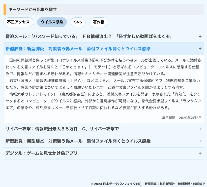 また、55本もの新聞記事(2024年度版)を教材内で紹介しており、毎年約10本前後の記事の入れ替えを行なっています。