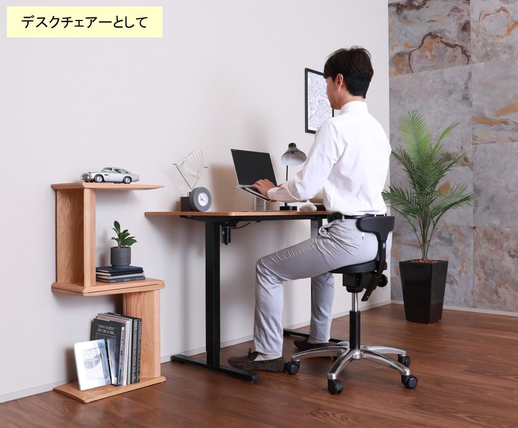 通常のデスクチェアーとしてはもちろん、カウンターなどに合わせてハイチェアーとして、また昇降デスクでの使用も可能に。