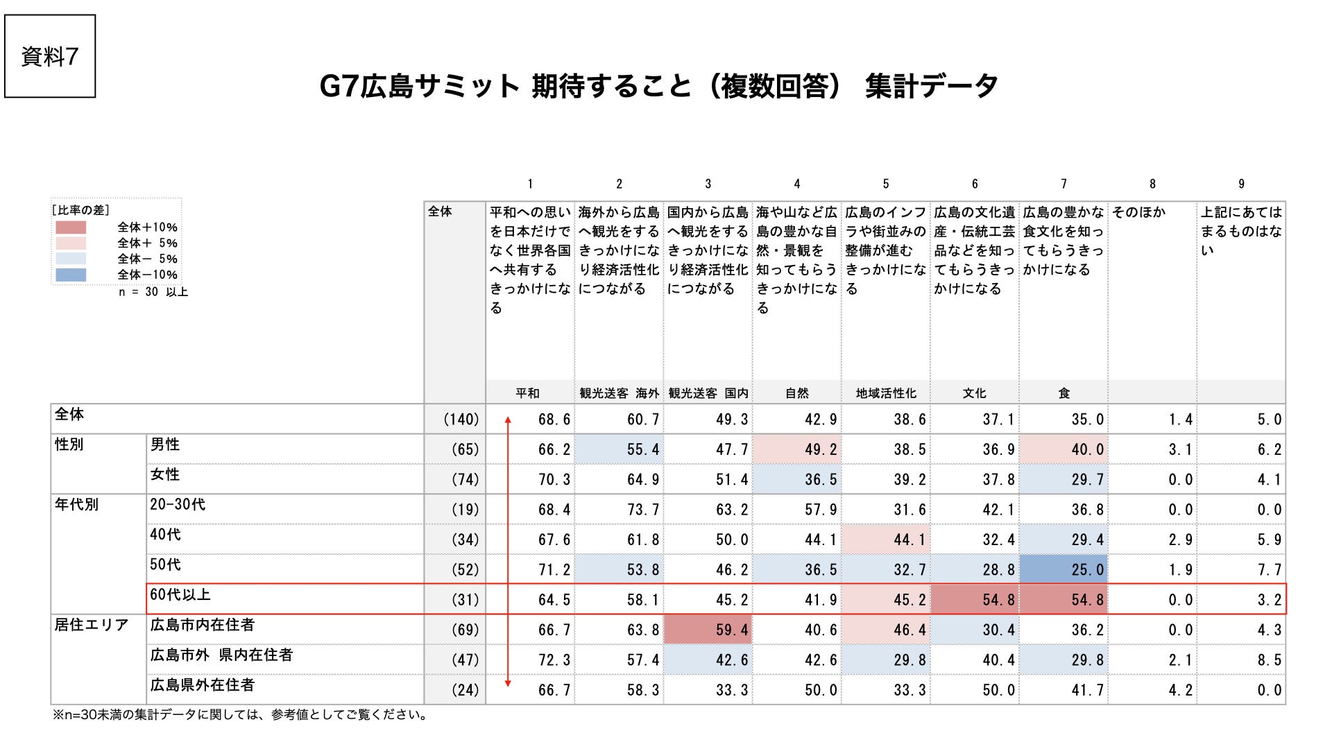 また年代別の傾向として、60歳以上の回答者では広島の文化・食など多彩な広島の魅力が伝わるきっかけとなることを期待している声も多く見られたという結果に。