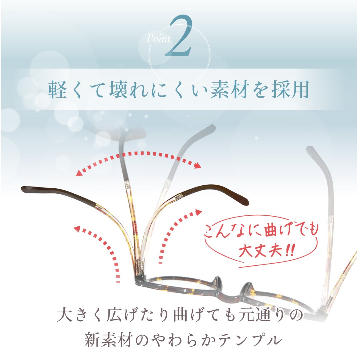 また、価格も4,480円とリーズナブルなので、初めて老眼鏡を手に取るという方にもおすすめです。