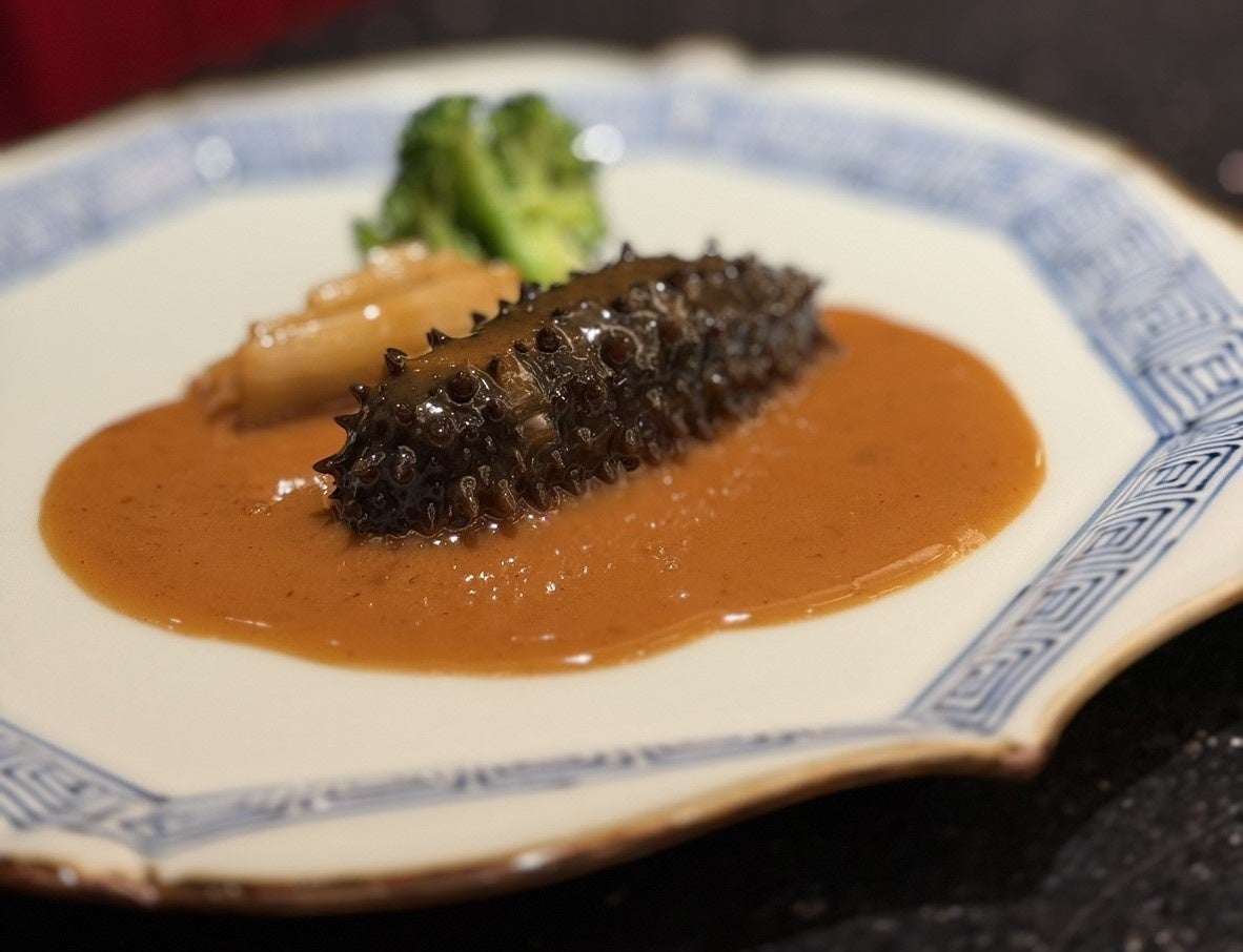 「檜山海参(ヒヤマハイシェン)」は、北海道渡島半島の日本海側で漁獲されたナマコを同地域で加工した乾しナマコです。丁寧に水戻しした後の姿がとても美しく、肉厚でネットリとした弾力ある食感が濃厚なソースとからみ合いフカヒレに近いような味わいを楽しめます。