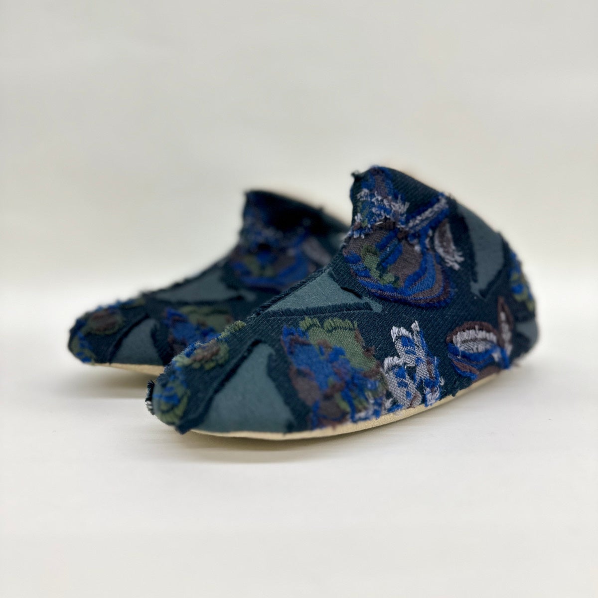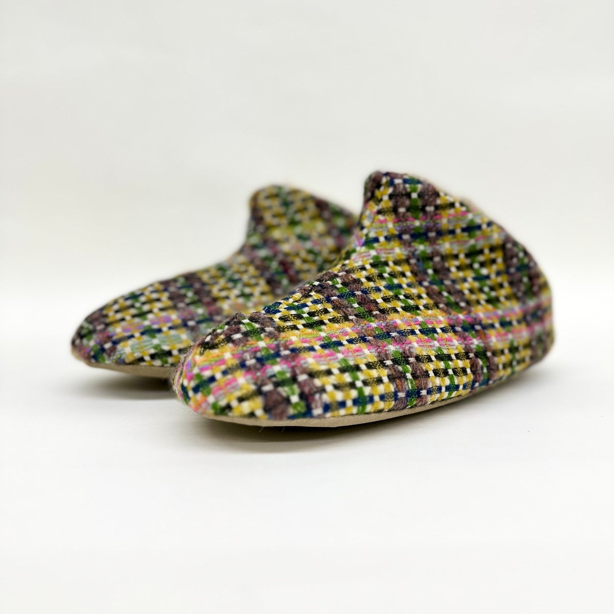 スリッパの生産量で日本一を誇る山形県河北町に在る、阿部産業とのコラボレーションが実現。第2弾となる今回は、“ハイカット+ボア”シリーズ。表地は佐藤繊維のオリジナルブランドの製造過程で出てしまう残反を再利用し、厚手の靴下に対応するため、ゆとりを持った作りで、手を使わなくても脱ぎ履きしやすいように、かかと部分がオープンなのも特徴。中敷に高反発ウレタンを使用している。
