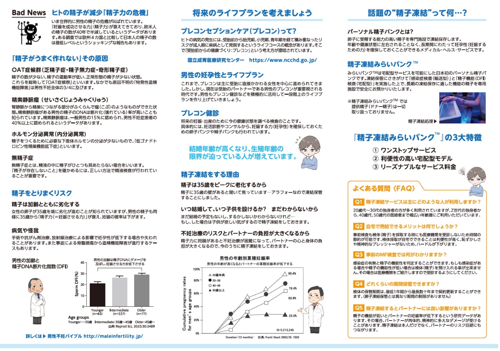 「男性の妊孕性(にんようせい:妊娠に必要な力)の事前検査から精子凍結保管までをワンストップで提供し、プレコンセプションケアを推進」