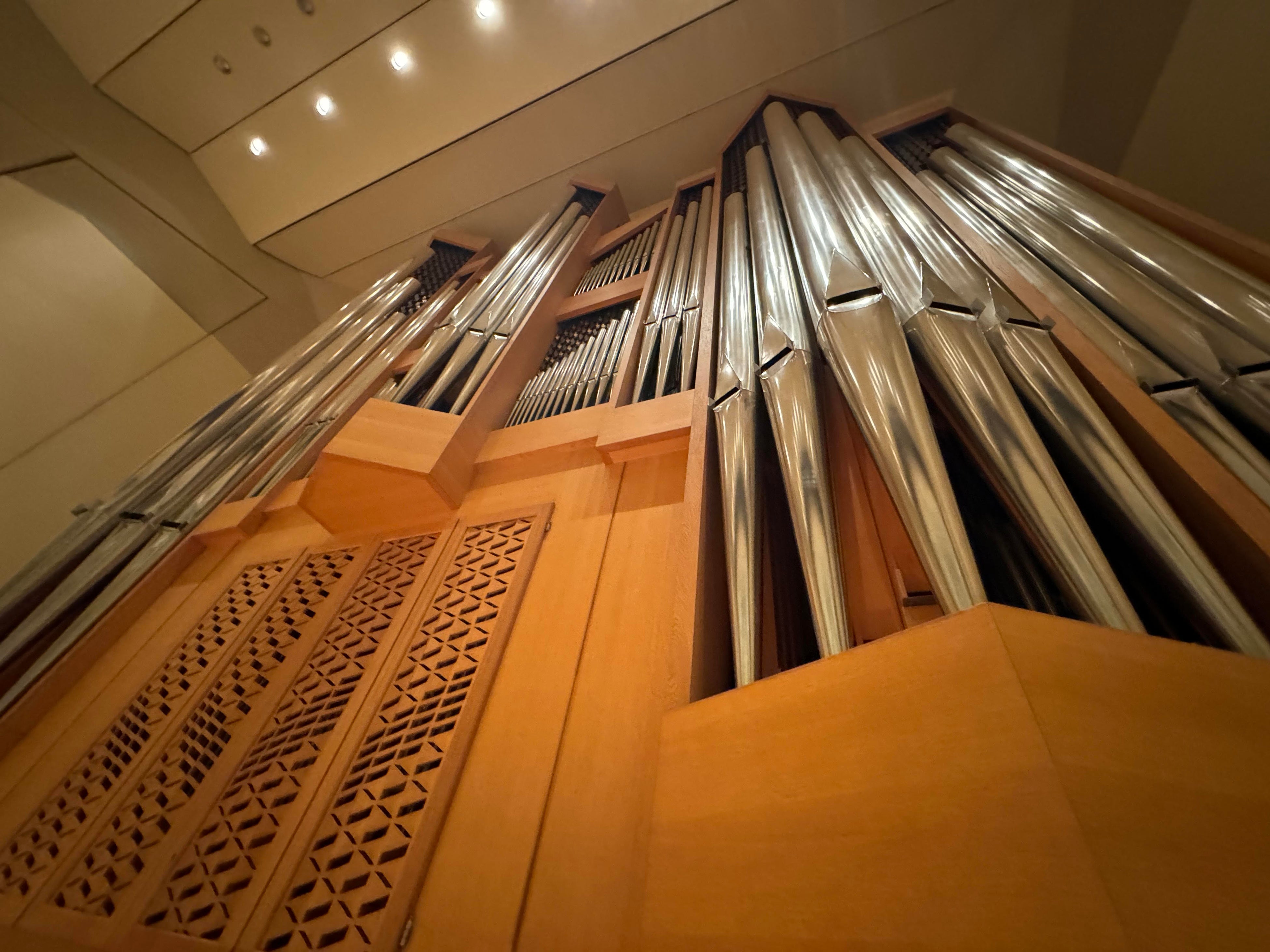クラシック音楽、特にバッハの音楽の演奏に最適な空間を目指していたため、設計当初からパイプオルガンの設置が計画されていました。その響きは「優しく」「オーソドックスな音」と評されることがあり、ホールの超一流の音響効果と相まって、神聖で独特な響きを生み出しています。開館以来、変わることなくホールの中心でその荘厳な響きを奏でてきたパイプオルガンは、当ホールの「魂」であり、地域文化の象徴です。