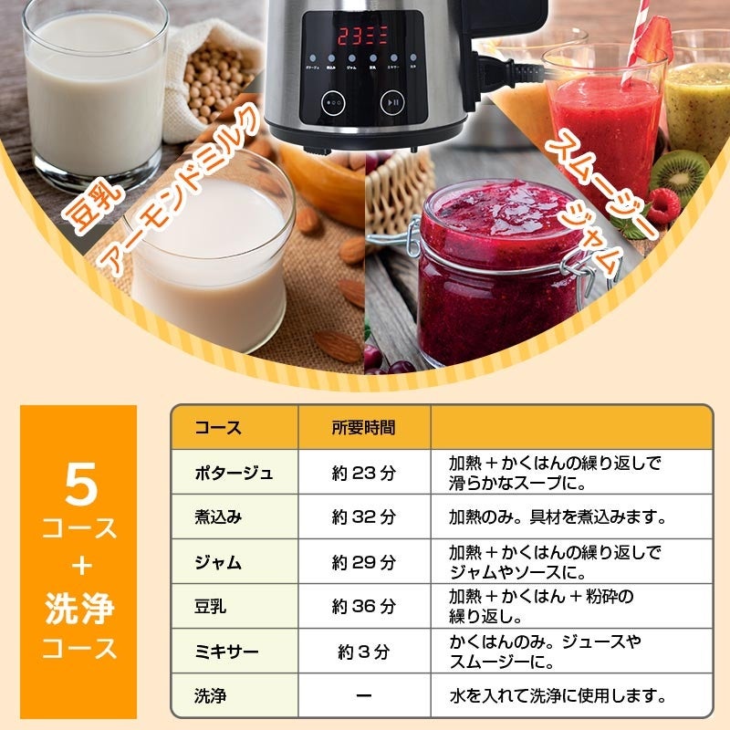 ・モード数/6種類(ポタージュ・煮込み・ジャム・豆乳・ミキサー・洗浄)
