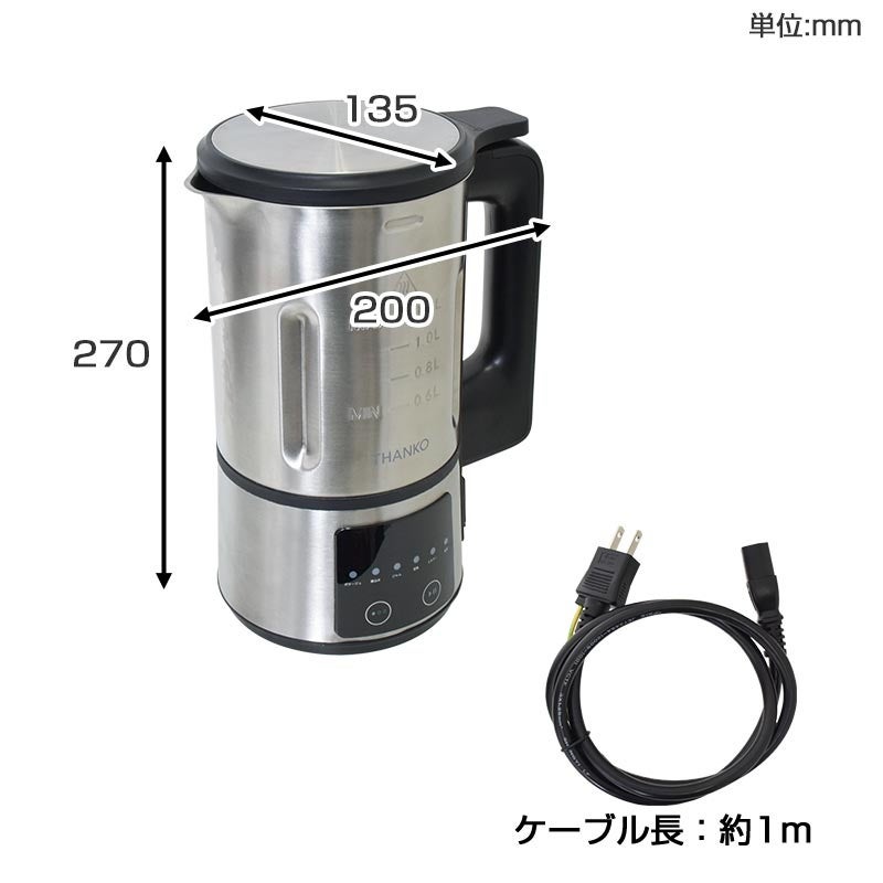 ・最大容量/1.2L(豆乳モード使用時:0.8L) ・最低容量/0.6L