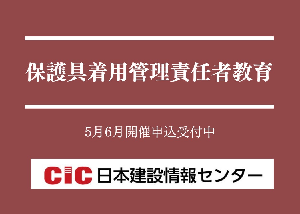 CIC日本建設情報センター(東京都港区、代表取締役社長:井坂誠司)では、早期対応が望まれる企業や法人向けに、1日6時間の講習で学科から実技まで完結する「保護具着用管理責任者教育」の講習会を実施いたします。