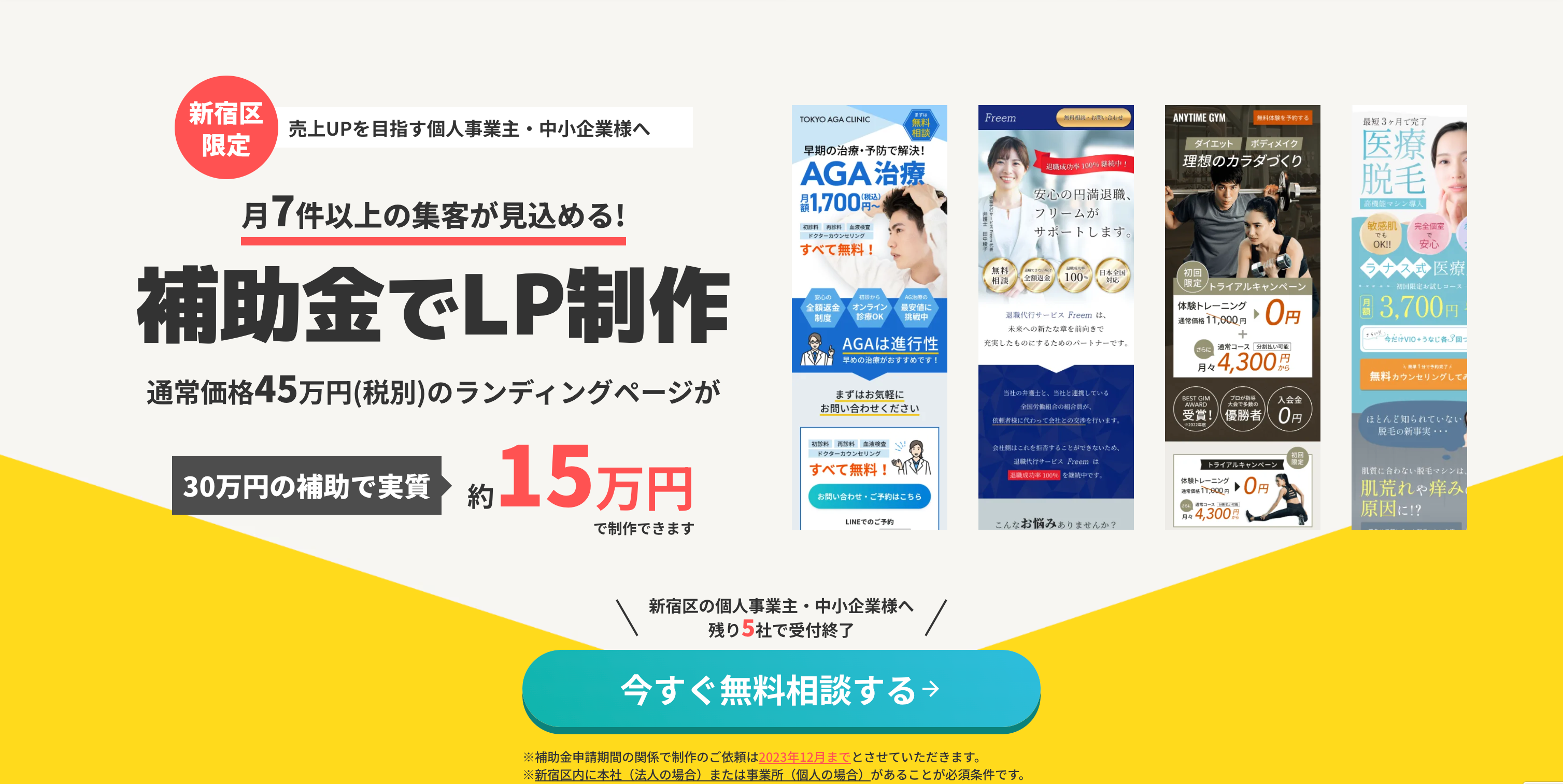 【新宿区限定】補助金申請からLP制作まで一貫対応キャンペーン(先着5名限定)