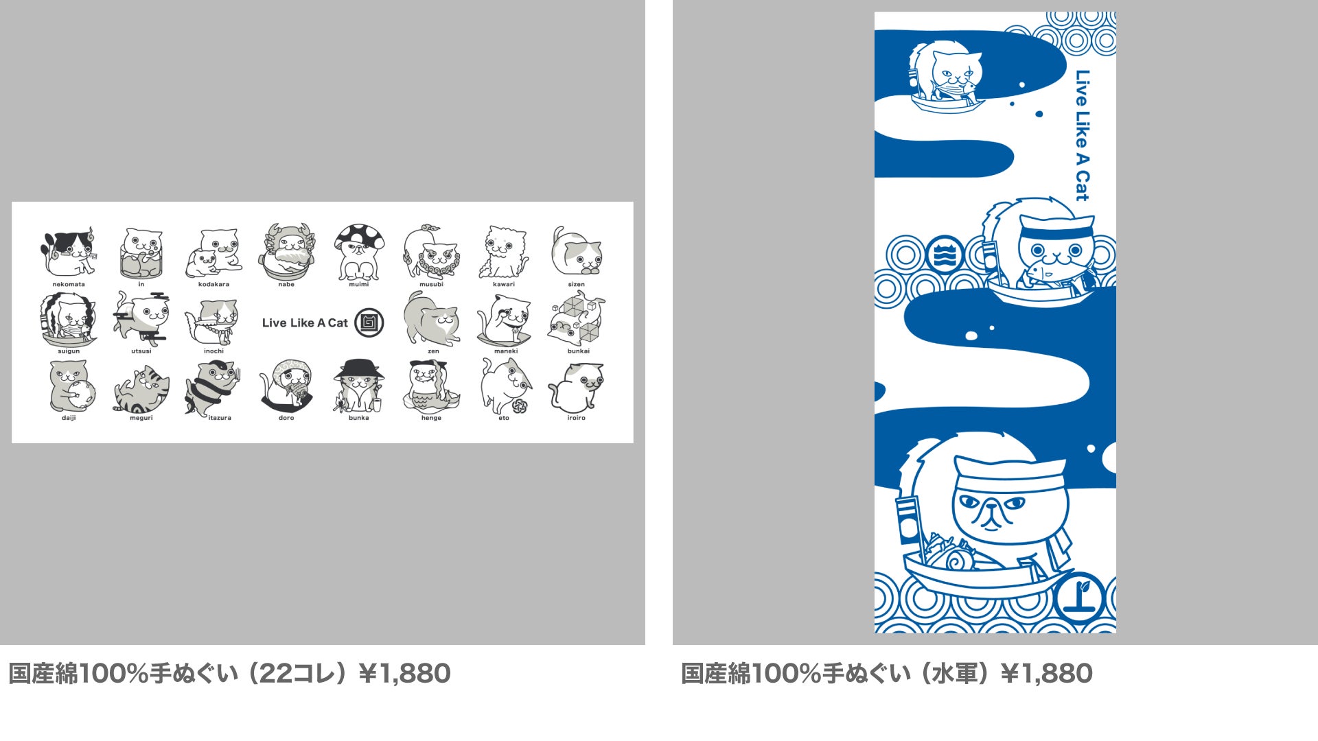 また同日、LLAC公式オンラインショップ「またたび屋」で新商品を発売します。リサイクルコットンとリサイクルポリエステルを使用した「Tシャツ」や発売後10分で完売した「国産手ぬぐい」の新デザイン、ポストカードセットやキーリングなど、新アイテムが目白押し。2月11日(土)から足利市立美術館で先行販売され、大人気となった「猫曼荼羅」グッズも加わるなど、注目のラインナップです。