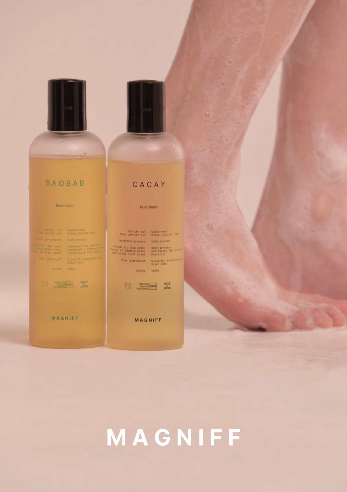 MAGNIFF初となる渋谷パルコでのPOPUPは、ブランドの軸となる「オイル」と「石けん」という素材に改めて着目し、植物原料がMAGNIFFの製品に生まれ変わるまでのストーリーをイベントのディスプレイ全体を通して表現する。