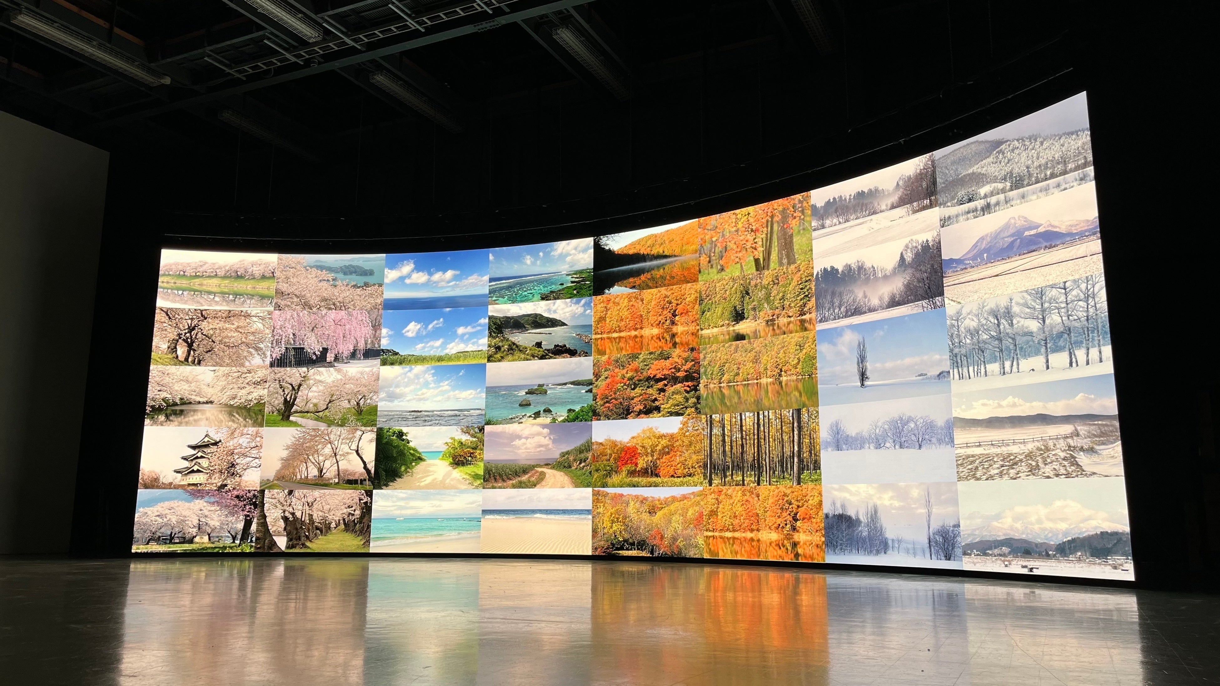 このたび両社が協業し、TOPPAN の「Meet Japan!®」が保有する自然や文化財などの高品質映像素材 150 ショットを、LED に投影する背景として角川大映スタジオ内の「C∞/シー・インフィニティ®」で活用しま す。これにより、出演者や制作スタッフのスケジュール調整に伴う負担や撮影地の天候リスクを軽減します。また、「C∞/シー・インフィニティ®」は、「Meet Japan!®」が保有する臨場感あふれる高品質な映像表現の使用により、実写により近い背景としての利用が可能となります。角川大映スタジオが保有する最新 LED バーチャルプロダクション撮影環境と、TOPPAN が長年にわたり培ってきた高精細映像の撮影技術を融合し、映像クリエイターがより気軽に多彩なシーンを演出できる環境を整備します。