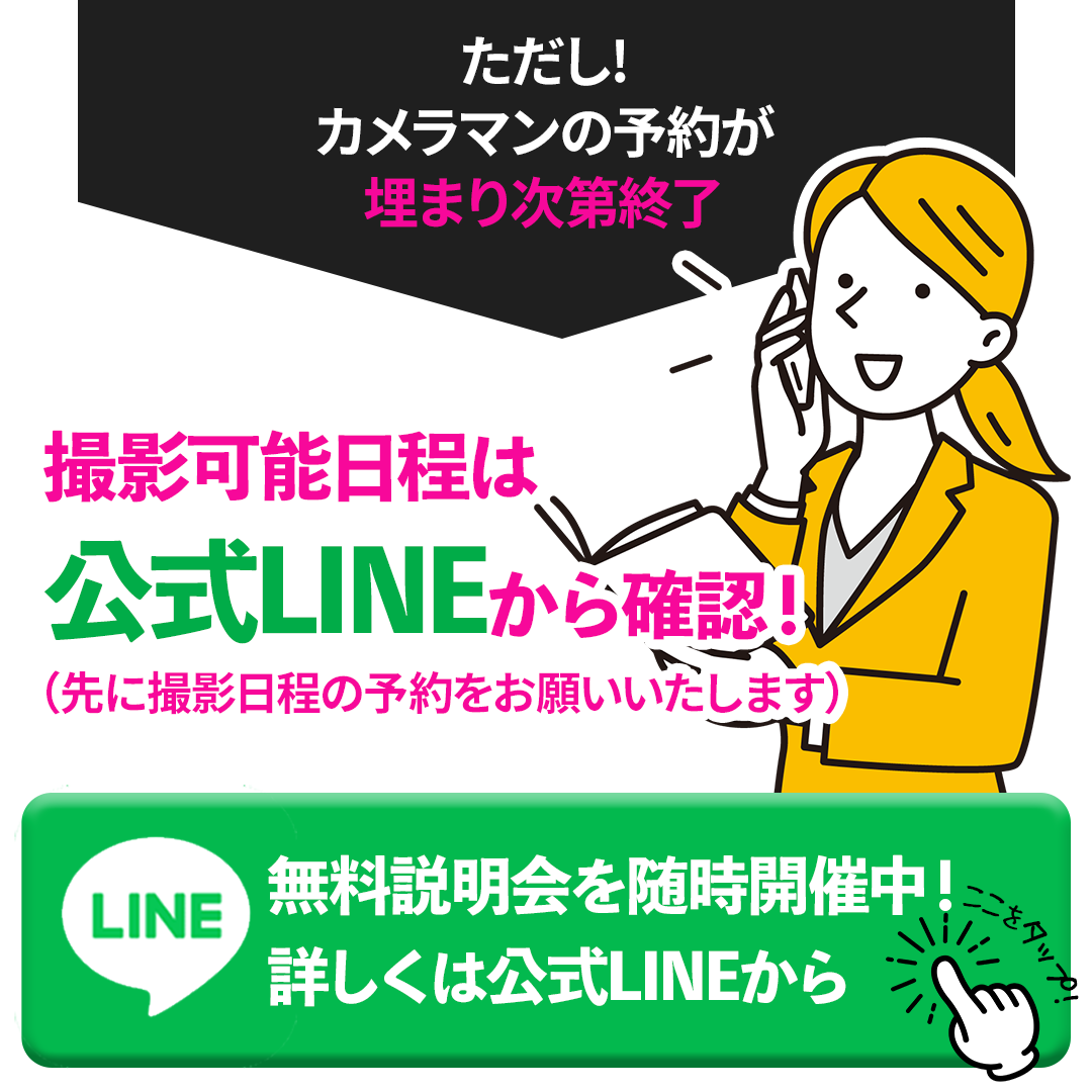 公式LINEからカンタン撮影予約で撮影以外はオンラインで円滑に完結。