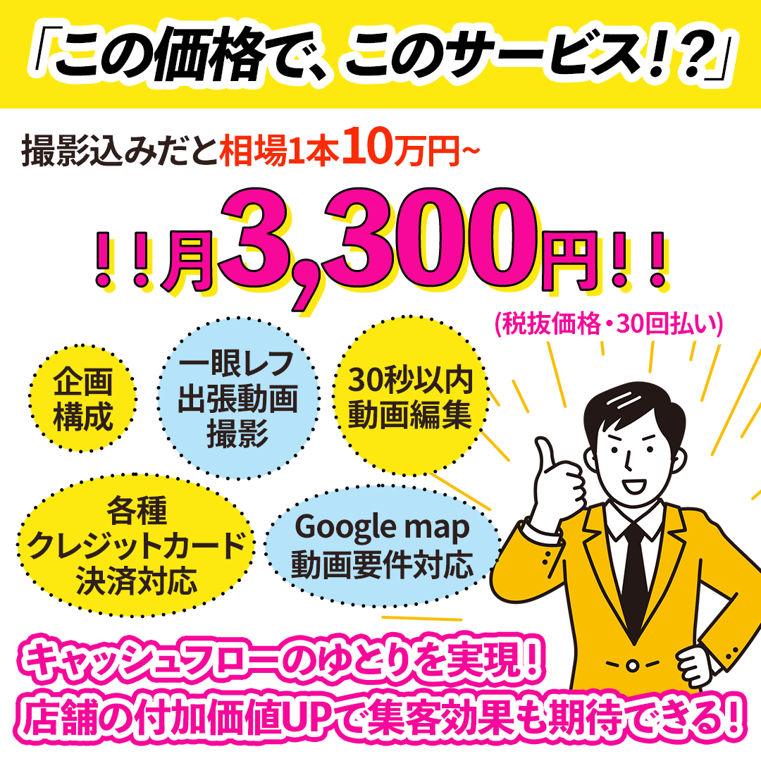 「店舗紹介動画をしたいけどキャッシュフローが心配」という経営者や店舗オーナー必見。