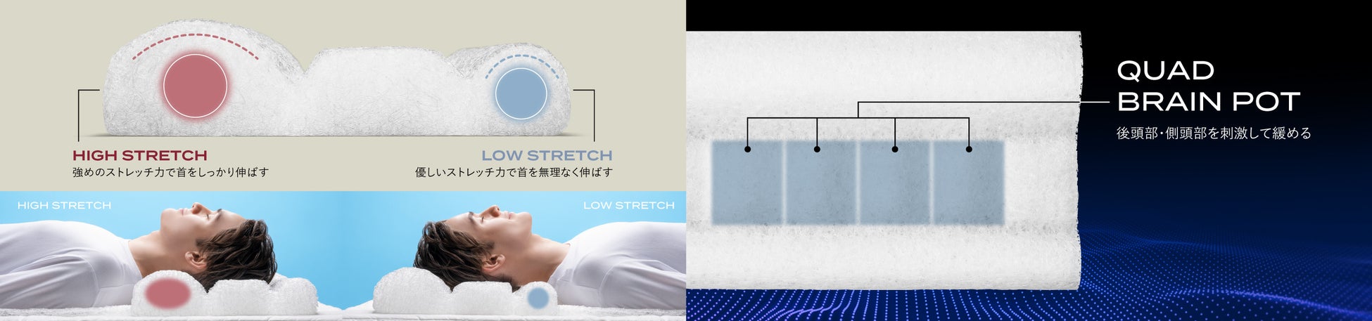 首の状態に合わせて使えるダブルストレッチ構造