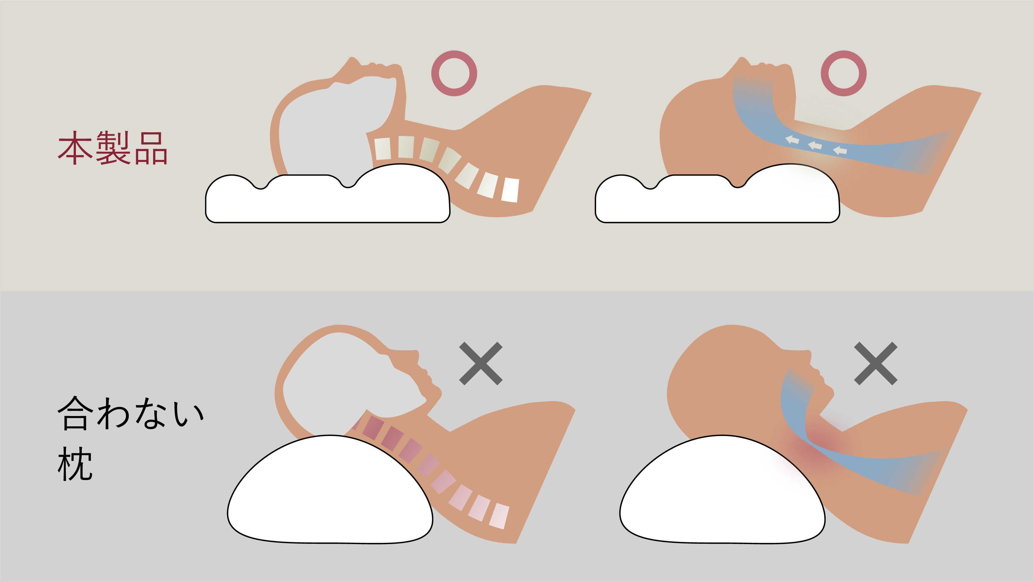 学習や仕事で長時間同じ姿勢を続ける現代人に向けて、睡眠中に首から肩甲骨のバランスを整え、自然な呼吸と深い眠りを促すことで、翌日のパフォーマンスを支えます。