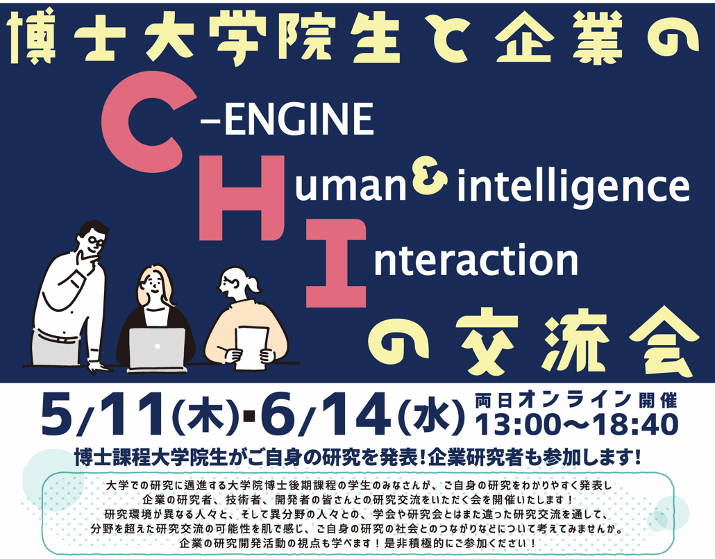 上記の課題を克服して研究インターンシップを推進することは決して容易なことではありません。実際には、博士後期課程学生の研究インターンシップへの参加は、諸条件をクリアした場合に限定されるのが現状です。例えば、論文研究が順調に進んでいる(指導教員の許可が得やすい)、指導教員が研究インターンシップ参加を奨励している、研究時間の融通が利く(理論研究の場合など)、などです。いずれの場合も、研究インターンシップに参加する明確な目的と意志が必要です。このような博士課程学生の割合は、残念ながら決して多くはありません。ですが、博士課程在籍者総数を考えると、まだまだ多くの学生に参加いただける余地があると考えています。また、CHIの交流会(博士後期課程学生と企業の研究交流会)企画などを通して、諸条件により一定期間の研究インターンシップへの参加が難しい学生にも、企業の人々との交流機会を提供しています。