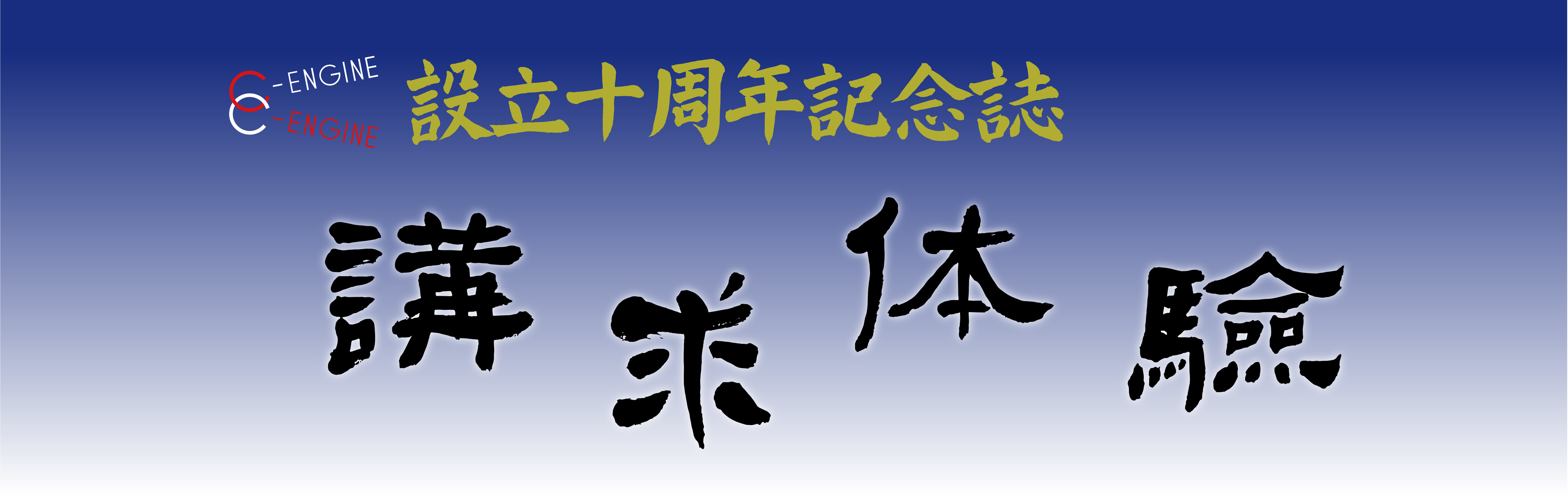 ※C-ENGINE設立十周年記念誌の題字「講求・体験」は、呂 坤『呻吟語』の「治道」の一節、“士君子、平日、事事講求、在在体験するも、時に望みてただ三五分を弁じ得るのみ。若し全然理会わさざれば、ただ紙舟、塵飯に似たるのみ” から、「学生は、大学で日々研究に研鑽を重ね、様々な体験を積み重ねている。研究インターンシップは、身につけた資質・能力を自己査定する貴重な機会である。そこで100%の力を発揮できなくても、その経験は更なる成長の糧となるはずだ。」という思いを込めて設定した。(C-ENGINE十周年記念誌:https://www.c-engine.org/2024/01/20/7825/)