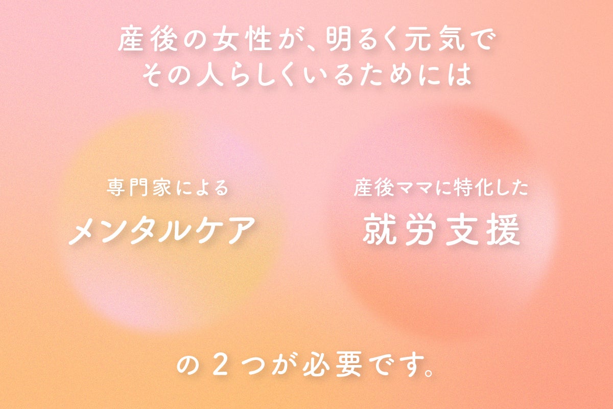 こうした課題を解決するため、当社は産後の女性が安心して就労に取り組める新サービス を立ち上げました。本サービスでは、メンタルケアと就労支援を組み合わせることで、産後の女性が無理なく仕事と向き合える環境を提供します。