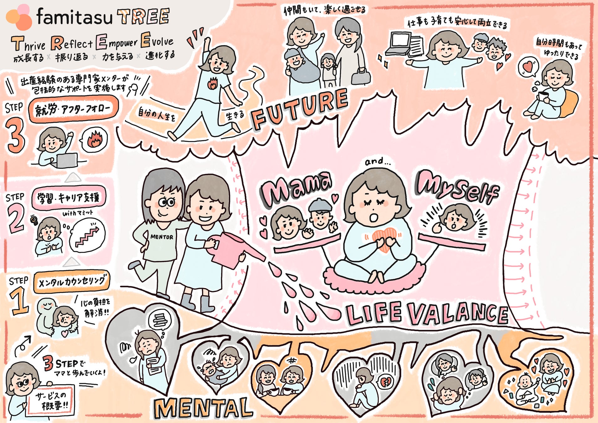 事業内容:家族のメンタルケアメディア「famitasu」運営、産後うつママ特化個人カウンセリング/ピアカウンセリング、メンタルヘルスに関するセミナー運営