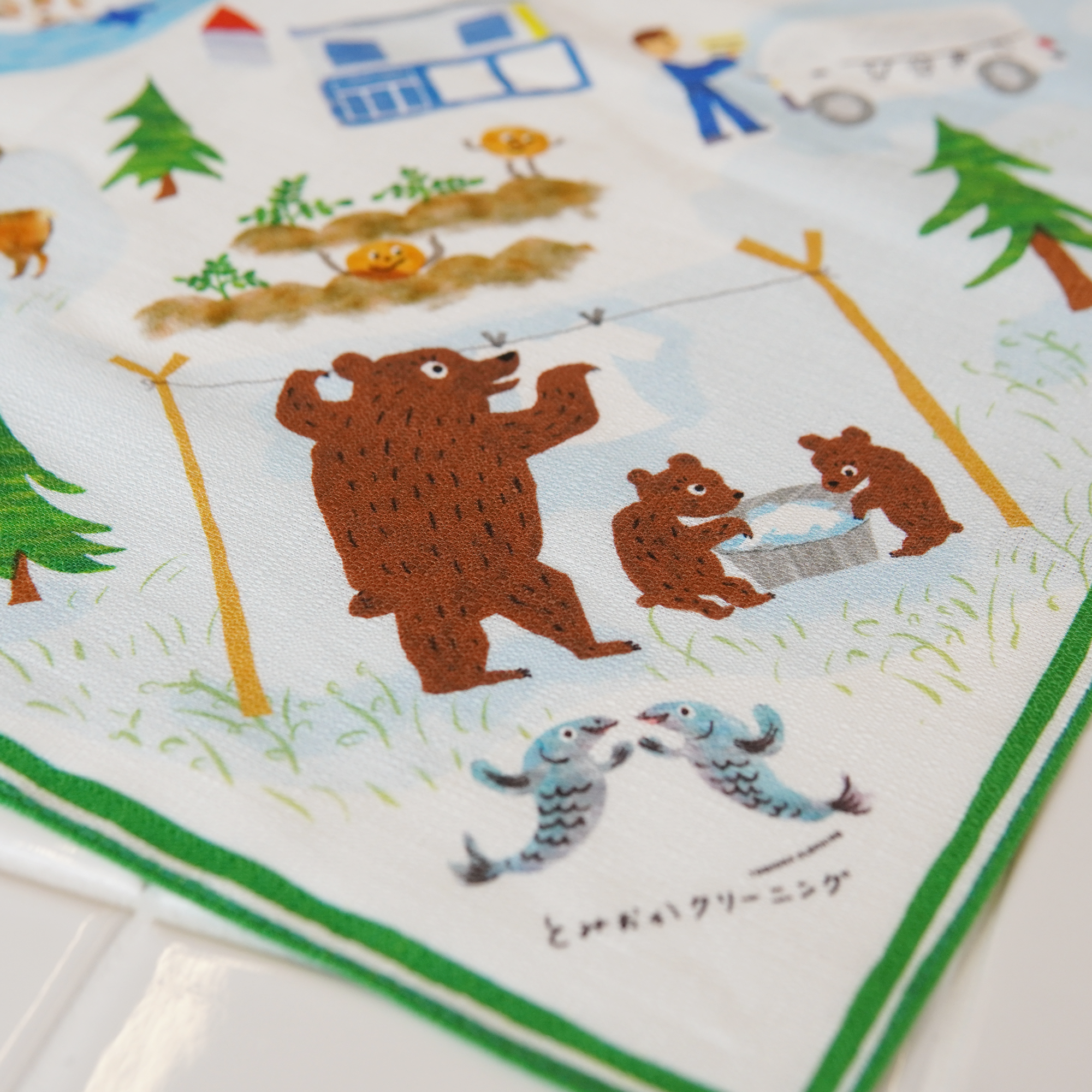 ◆牛や熊の親子など森の住人たちが楽しくお洗濯する風景をデザイン