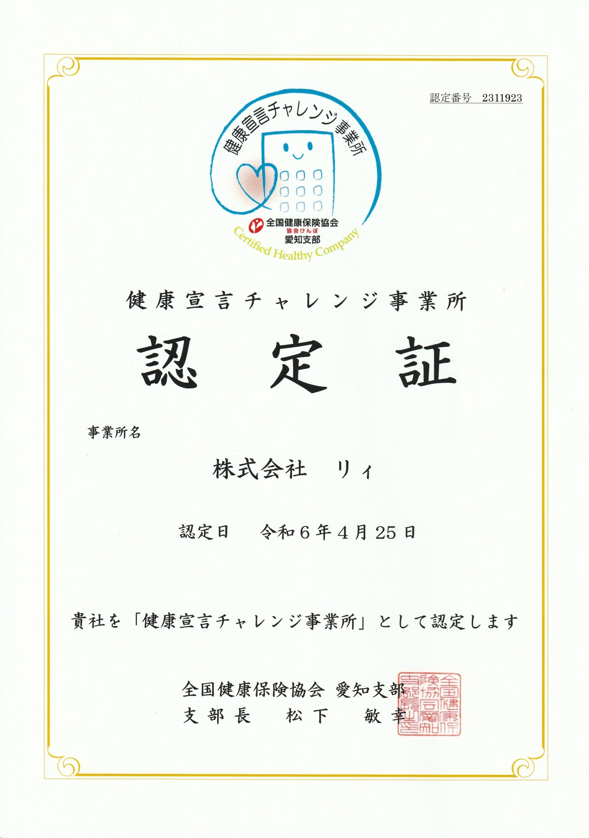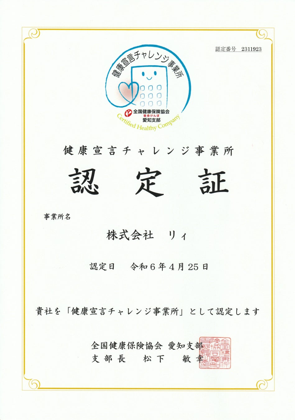 2024年度は健康宣言チャレンジ事業所に認定されました。