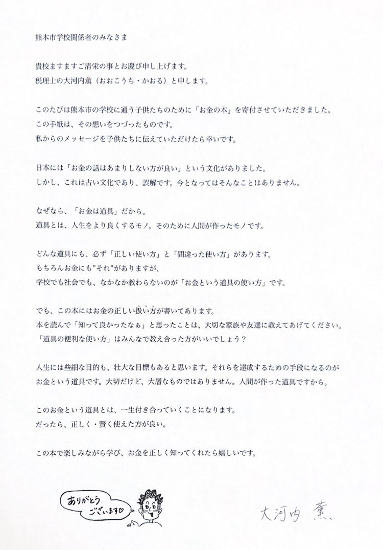 このたびは熊本市の学校に通う子供たちのために「お金の本」を寄付させていただきました。
