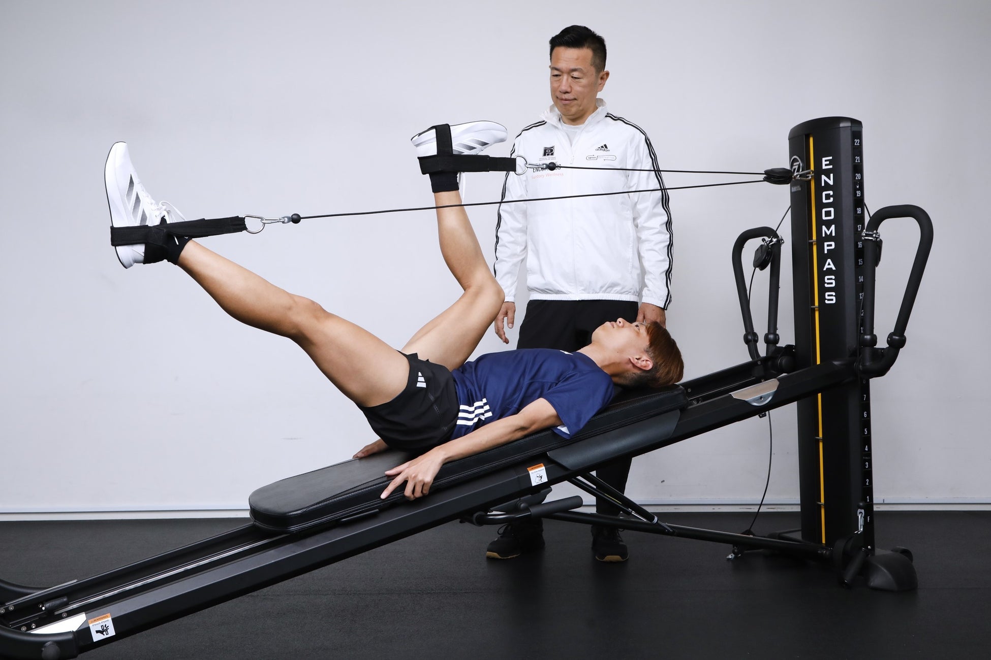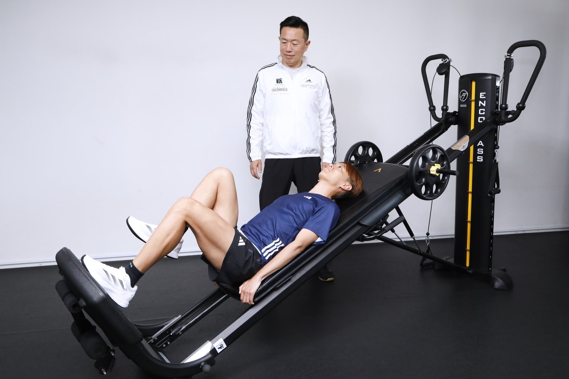 スポーツモチベーションが日本総輸入代理店として扱う画期的なトレーニングマシン、ENCOMPASSを導入したフィジカルトレーニングを行う神野大地選手。