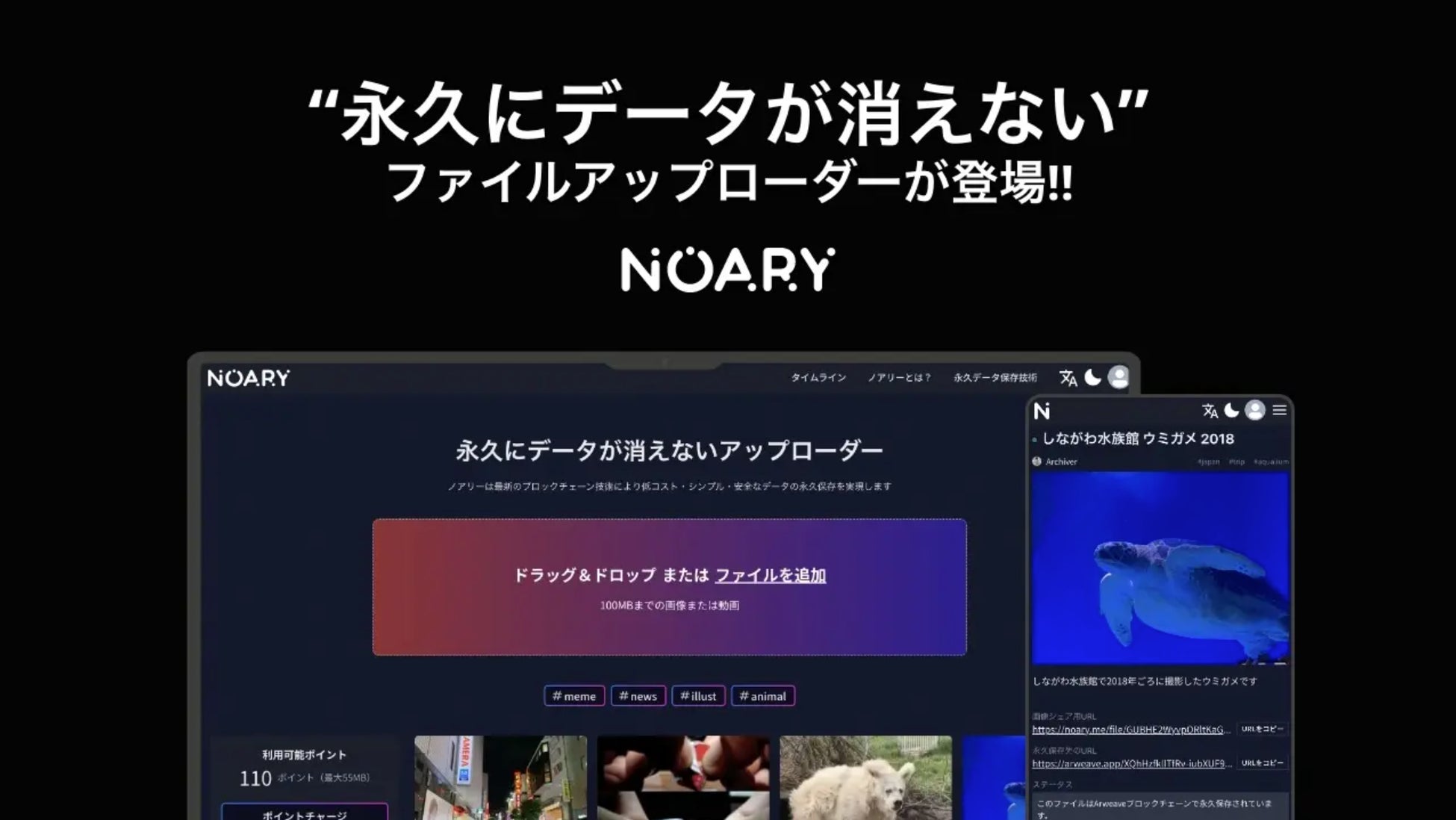 NOARY(ノアリー)は、"全ての重要なデータを安全かつ永久に保存し、アクセス可能にする"というミッションを達成するために、ArweaveというWEB3.0ベースの分散ストレージ技術を活用し、ファイルの永久保存を誰でも気軽にご利用いただけるサービスを6月に開始いたしました。