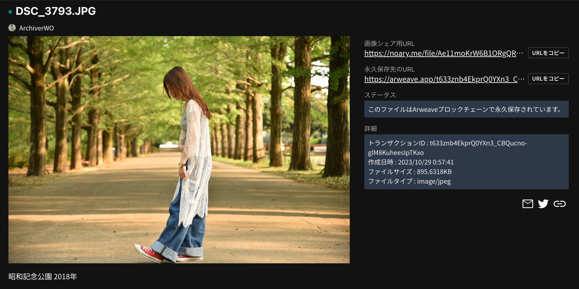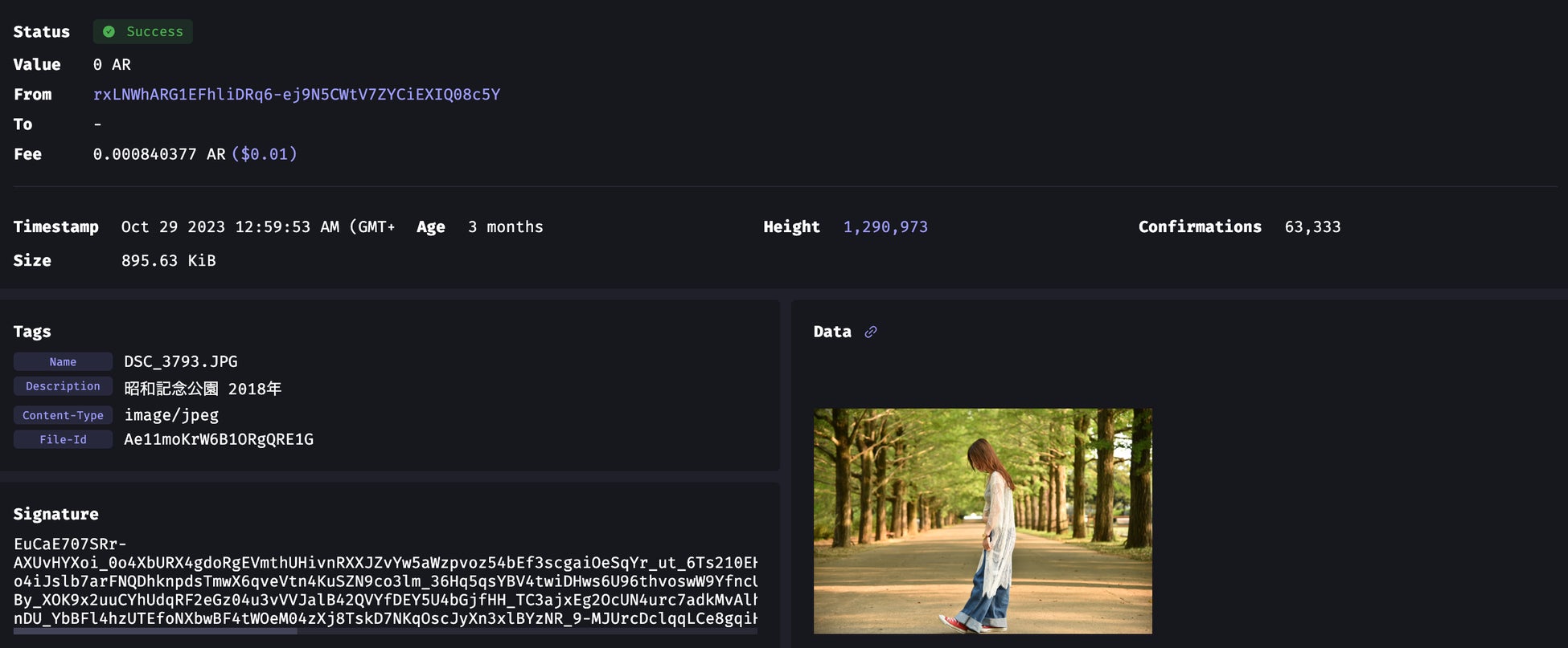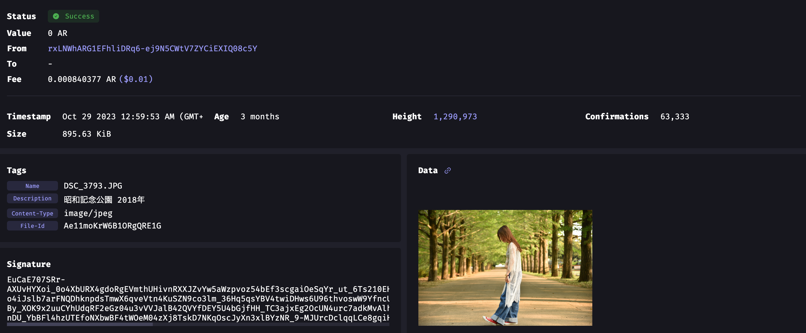 *画像だけでなくタイトルや概要などのメタデータもArweaveブロックチェーンに永久保存されています