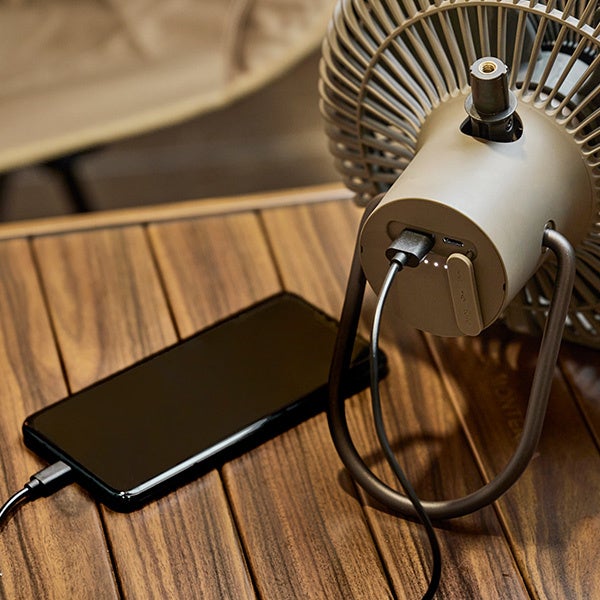 大容量バッテリーでポータブルファンとして使用しながら、非常時の電源としても活躍します。