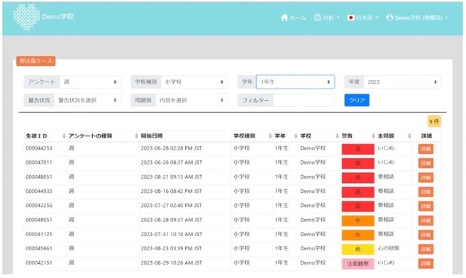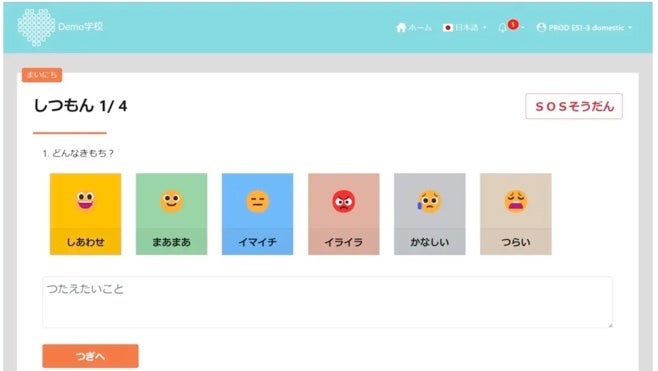 アンケートは、学校や教育機関側が、「毎日」、「週1回」、「月に1回」の3パターンから事前に選択できます。子どもたちは、インターネットに接続できれば、スマートフォン▽タブレット端末▽パソコン−といった機器で回答可能。設問数は、学年によって異なります。