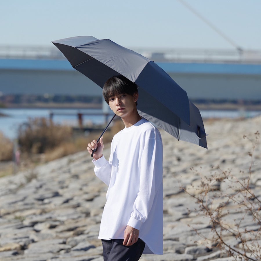 ユニセックス向きは耐風仕様の長傘と大きめ65㎝折りたたみ傘、自動開閉の折りたたみ傘の3タイプ。ブラック、ネイビーにニュートラルなグレーが加わりました。男性はもちろん、大きいサイズをお求めの女性にも好評なサイズ感で、オンオフ問わず幅広い層にお使いいただけるスッキリしたスタンダードなデザインです。