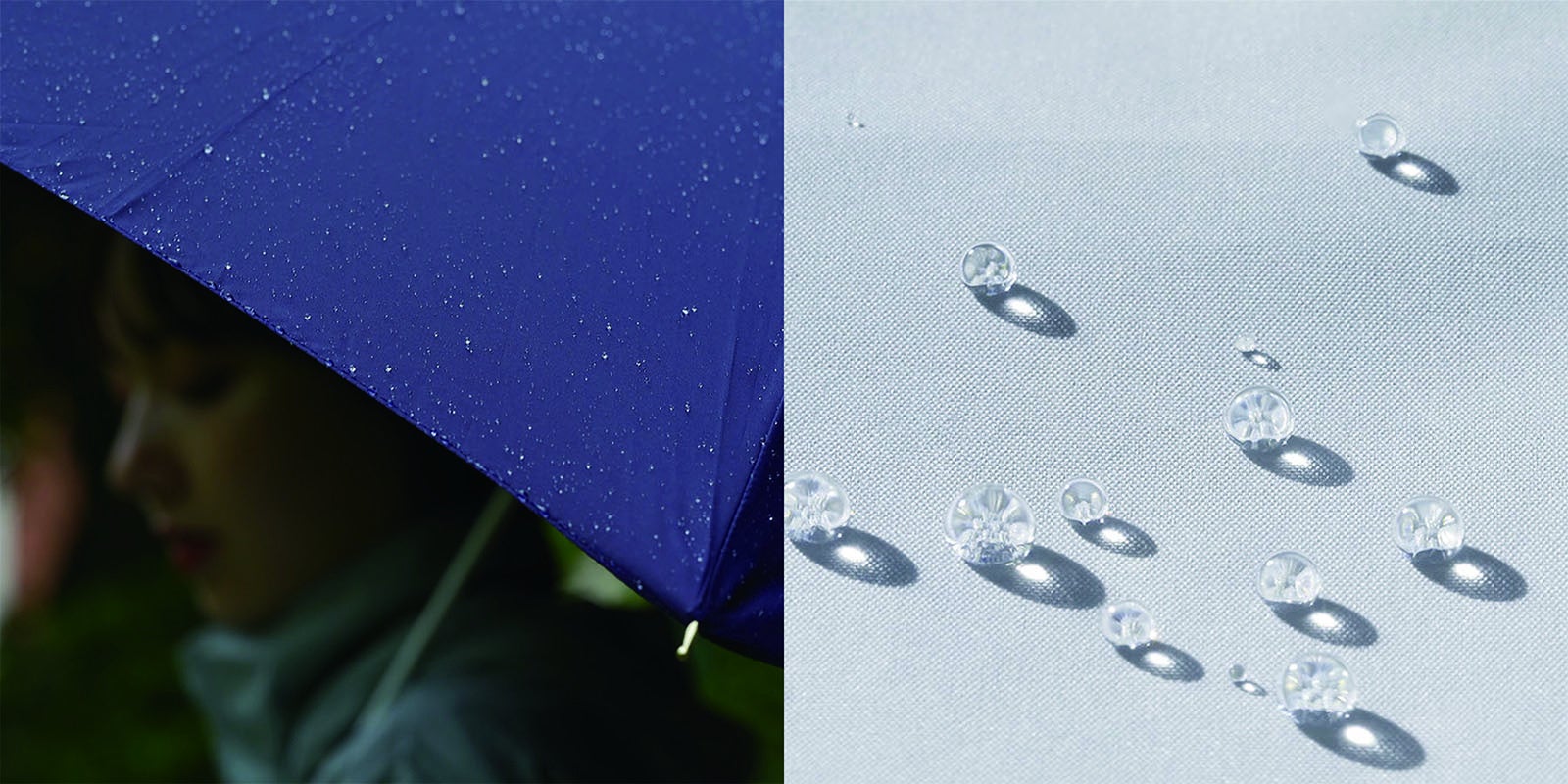 全国的に梅雨入りが始まるこの時期は、撥水性最高クラス、持続性・回復力・U V機能もある「Peach drop」で雨にも紫外線にも備えたい。