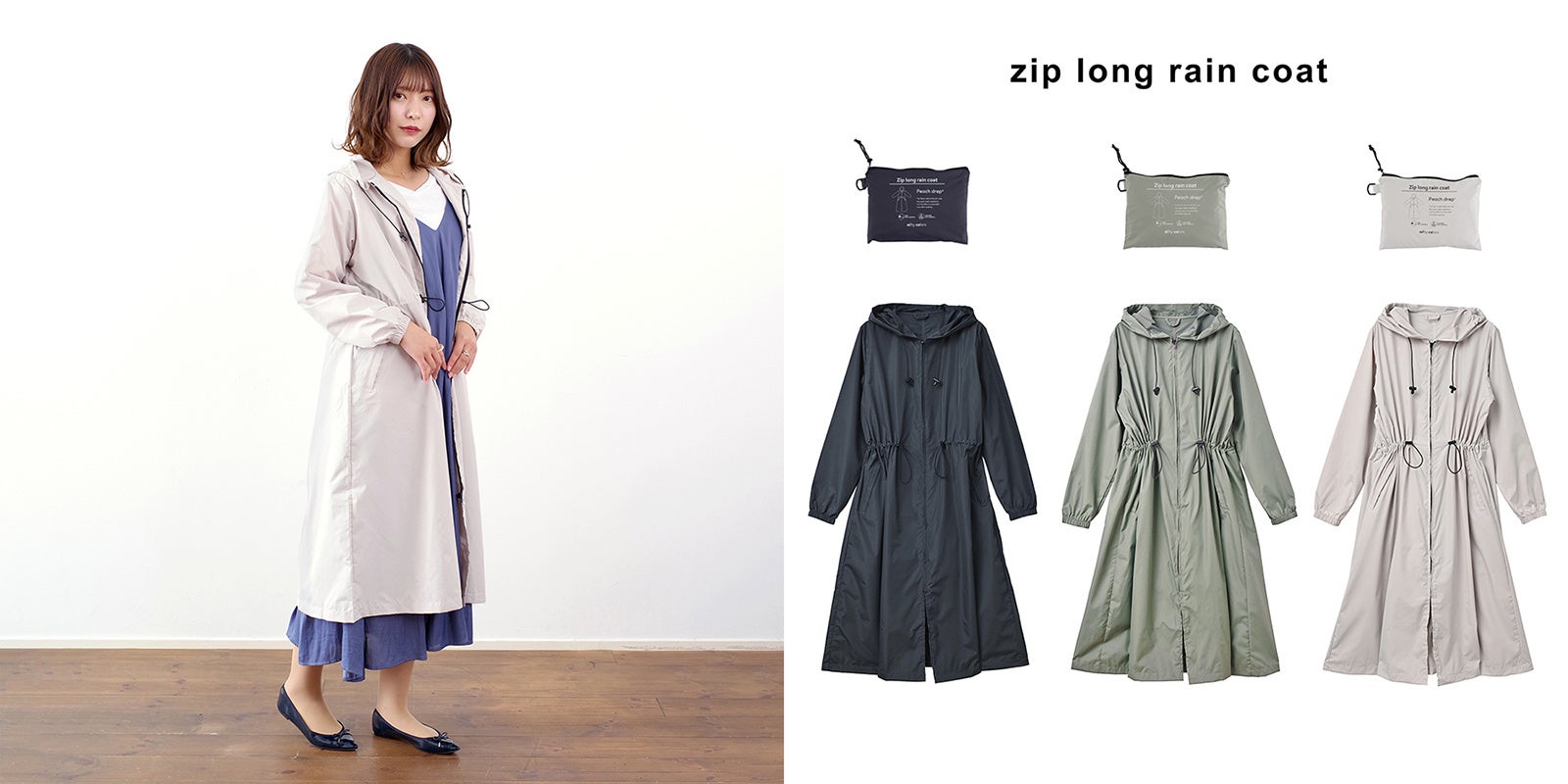 ピーチドロップジップロングレインコート(チャコール/カーキ/サンド)¥6,600(税込)