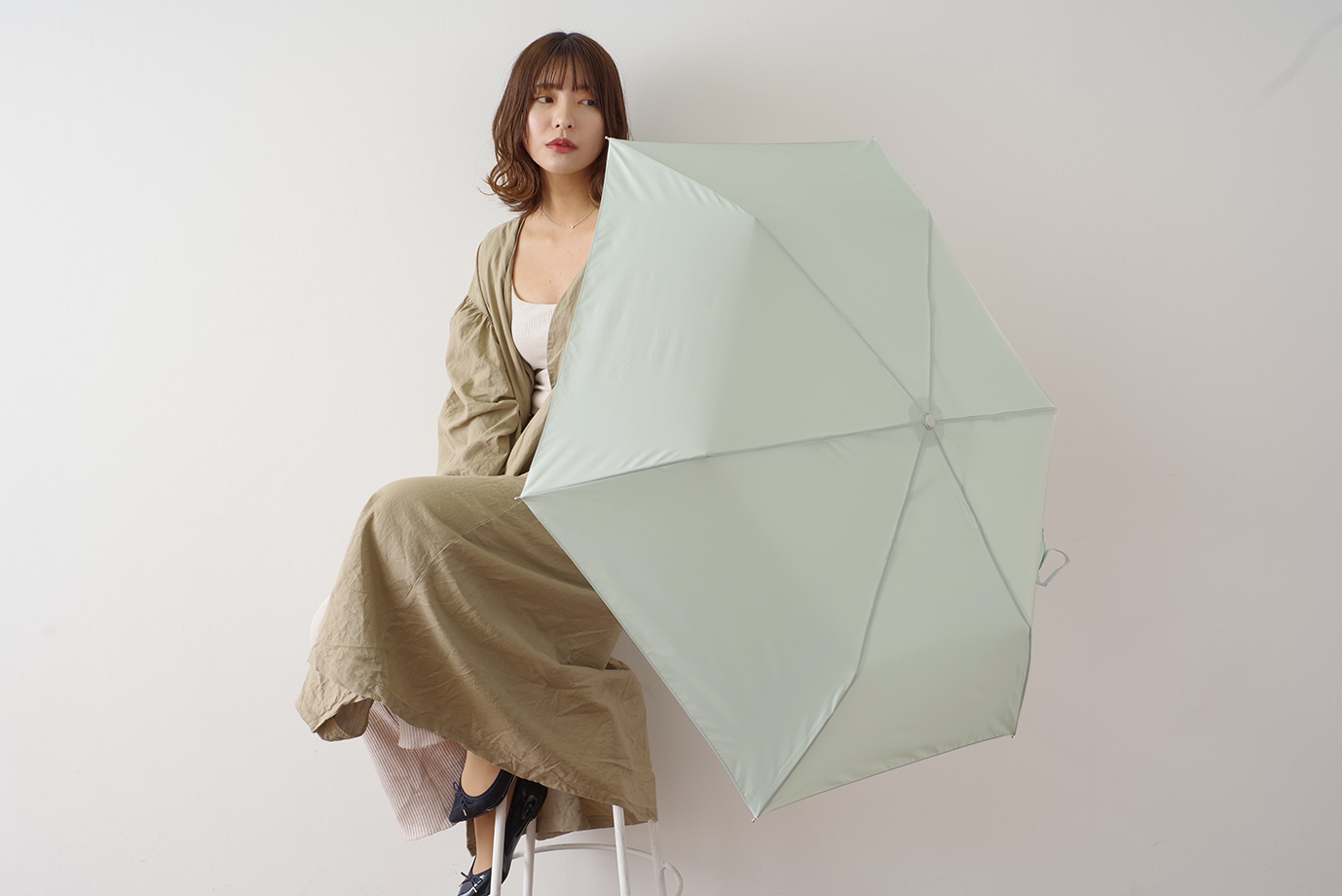 右:ピーチドロップ耐風ミニ55(ブラック/ネイビー/グレー/オフホワイト/グリーン/ピンク)¥3,850(税込)