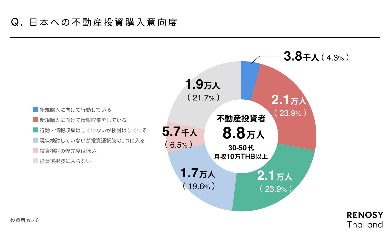 1.日本の不動産投資市場:バンコク在住の高所得者層の中で、日本の不動産投資に興味を示す人々の市場規模は4.5万人と推定されます。