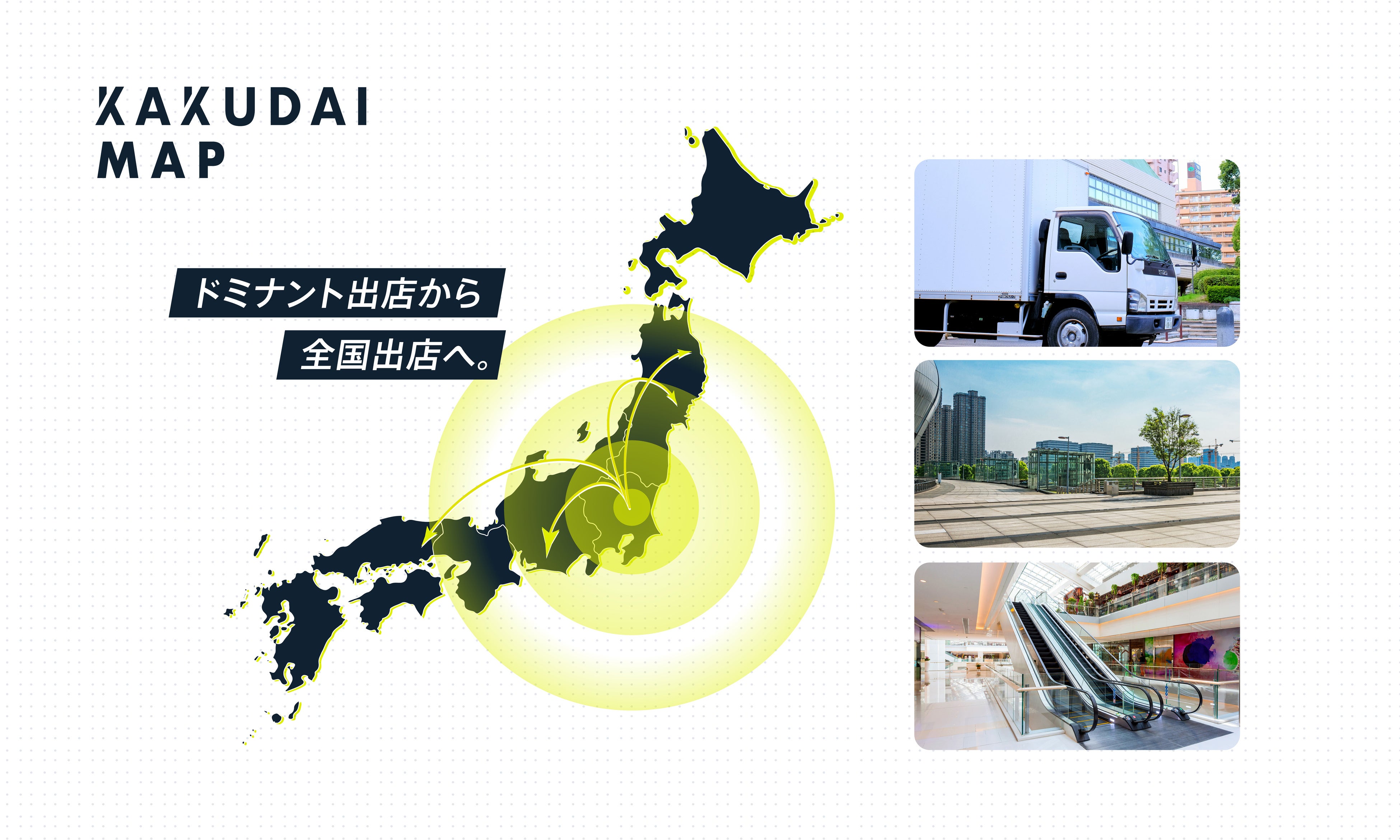 私たちは「KAKUDAI」で店舗の常識を超えた新しいマーケットを創造していきます。変わった日常に非日常のワクワク購買体験を提供し、世の中を便利にしたい。全国の未使用スペースに、新たな価値体験と新たな店舗を拡大させていきます。