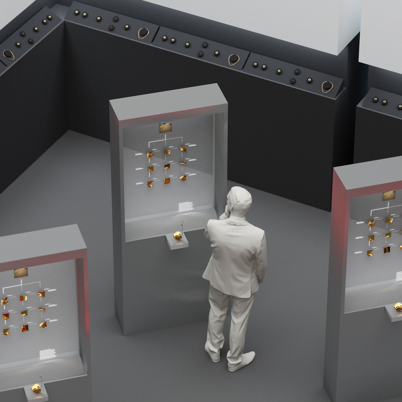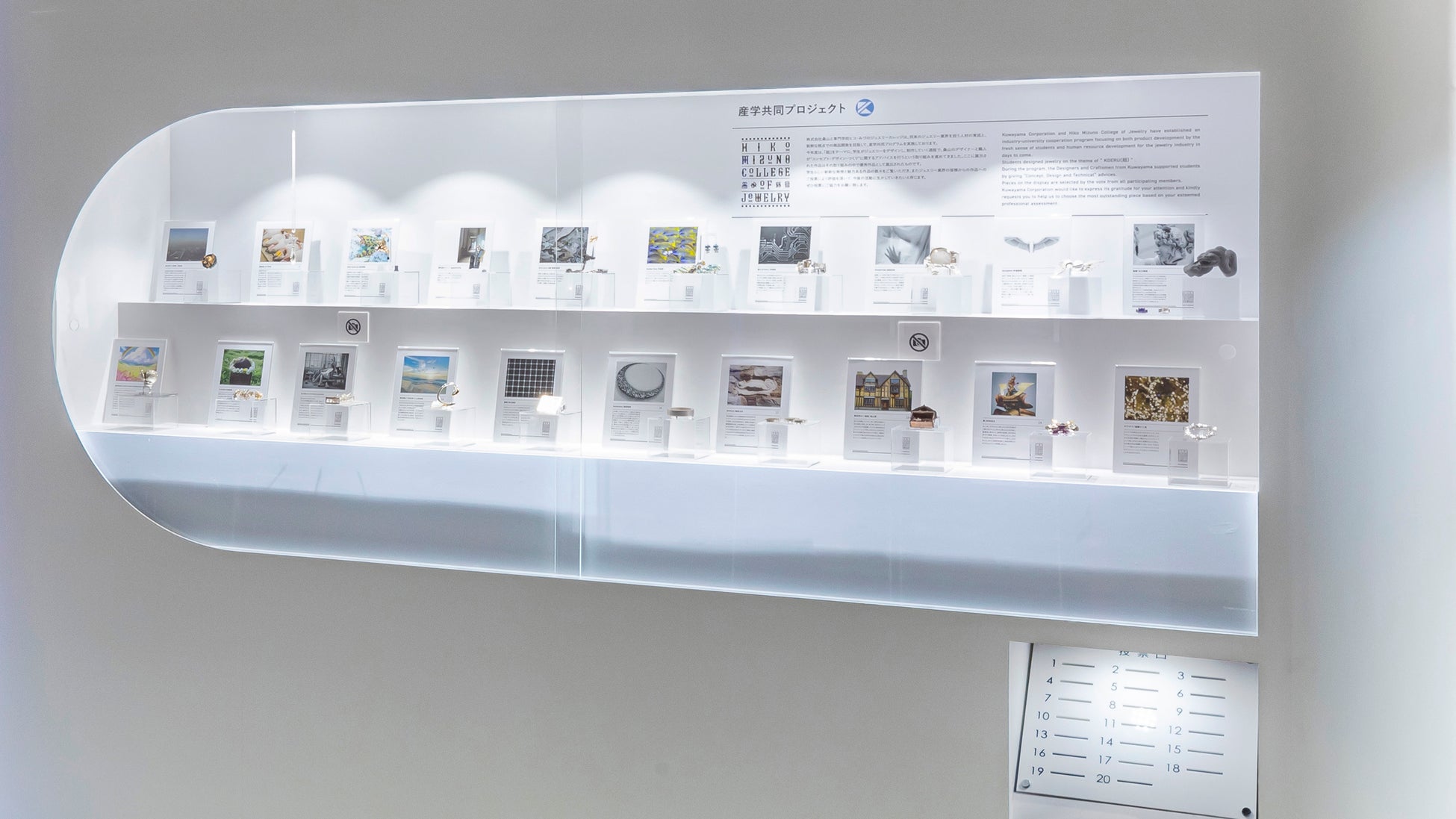 また、ジュエリーに欠かせない2つの側面である、技術力(物性)と美意識(感性)について展示を通して理解していただける構成です。