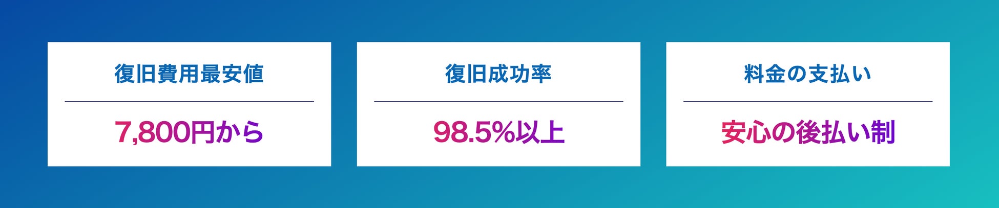 さらに、「お支払いは後払い」で、全く復旧できない場合は代行費用は掛かりません。ですのでお客様は安心をしてご依頼を頂けます。