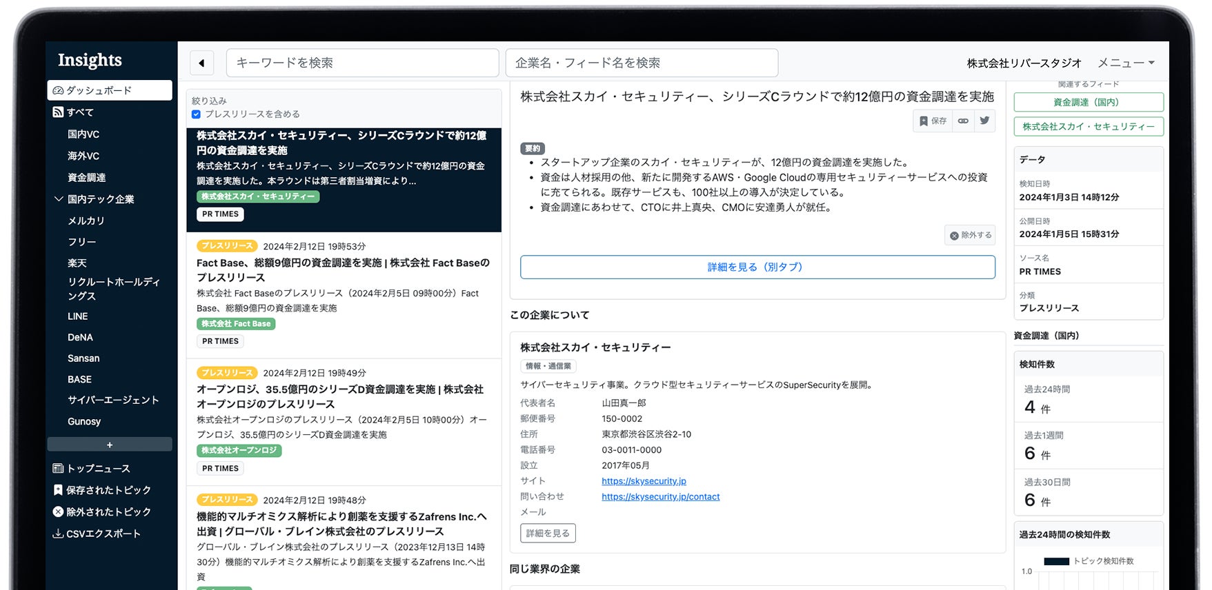 資金調達したスタートアップの企業情報を取得して、いち早く営業活動に使用