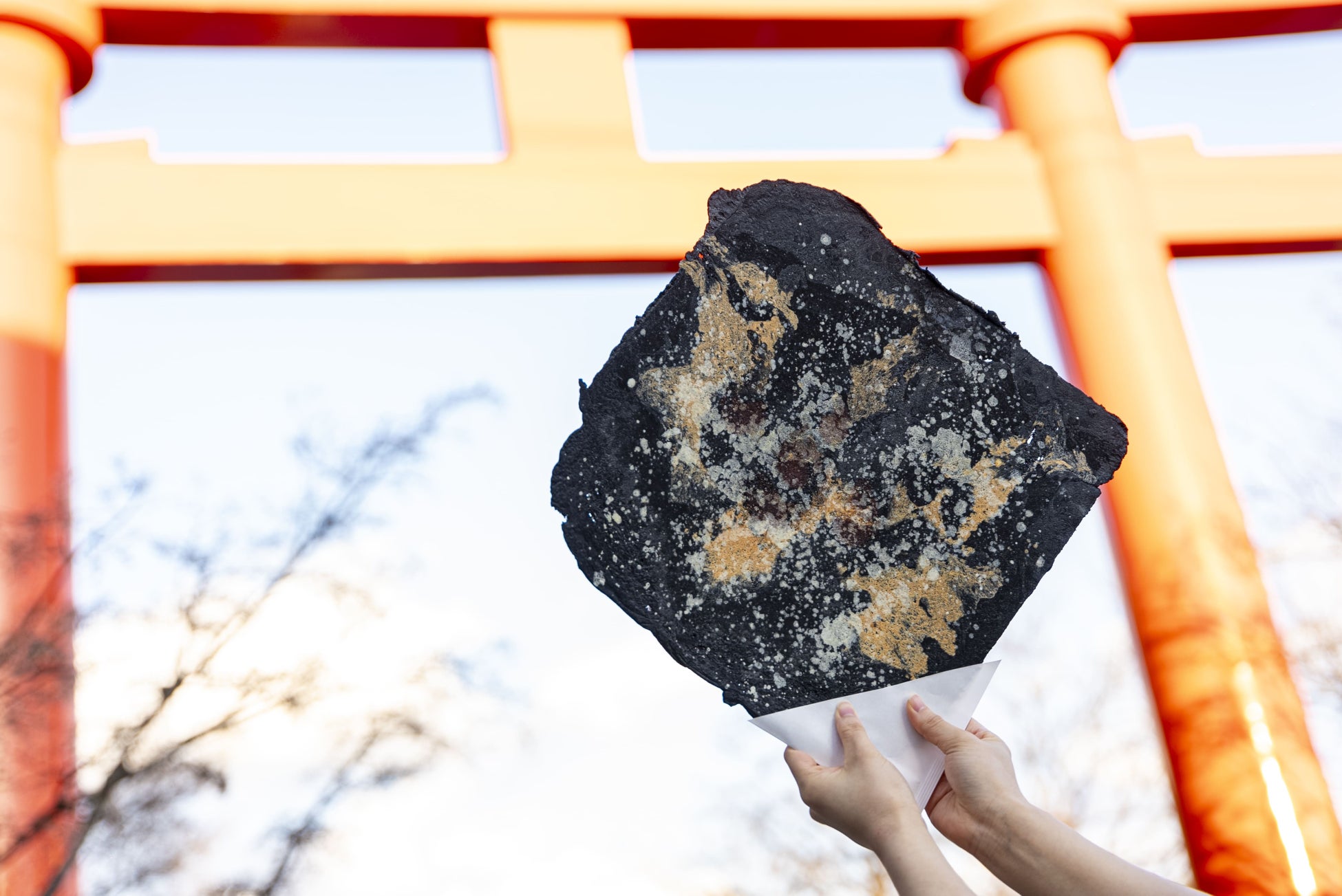 濃厚なチーズの風味と竹炭の香りを楽しめる深い黒色をした煎餅。