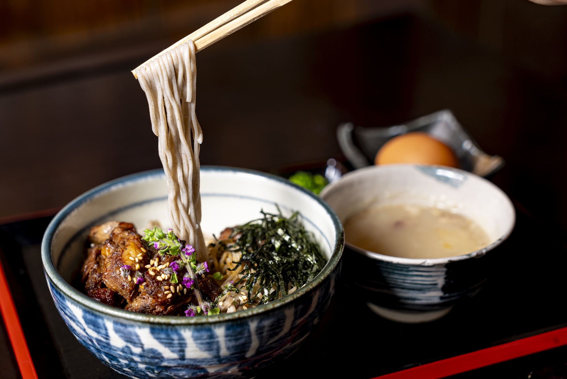 柚子の風味とコクの深いテール肉が絶妙に調和した肉蕎麦です。口の中でほどけるような食感と、柚子の爽やかな香りをお楽しみください。