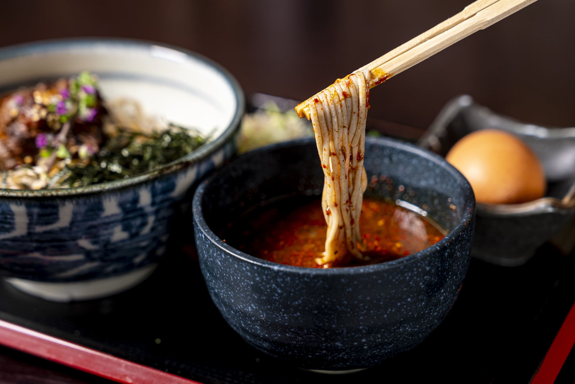 鰹節などをふんだんに使用した出汁に、こってりとしたテールの旨味をぎゅっと加えました。ピリ辛の濃厚出汁を、麺に絡めてどうぞ。