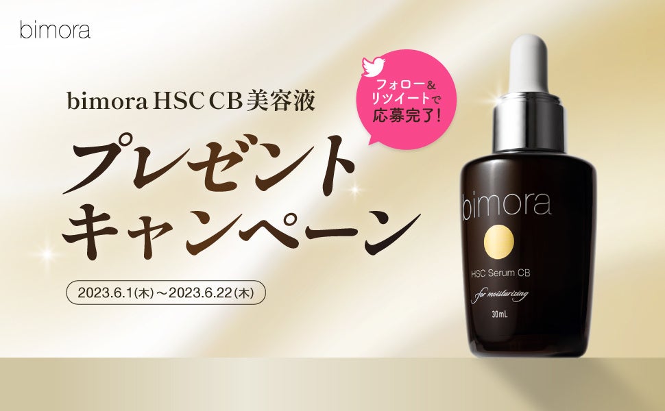 2023年6月1日にBimoRaの「HSC CB美容液」の販売を開始しました。それに伴い、日頃からBimoRaを応援してくれる方に感謝を込めて、BimoRaのTwitter公式アカウントにて当製品のプレゼントキャンペーンを実施中です。応募方法はフォローとリツイートのみの簡単なものとなっているので、購入履歴などに関わらず、どなたでもご気軽に応募していただけます。