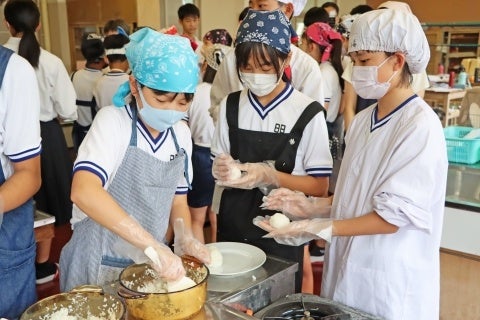 大津校舎1年生が、明倫小学校を訪問し、6年生と交流しました。これまでもビデオメッセージで明倫小学校のみなさんの進捗や思いを聞き、交流を行ってきましたが、当日は、理想の塩むすびを作り上げていくための試食会を行い、どのような想いでにぎったか、どうしたらもっと美味しくなるかといったアイデアを共有し、意見交換をしました。JA長門総括本部の皆様のお力添えをいただき、「みすみ米」と「ゆや米」を比較。それぞれの良さを味わい、長門市の食の豊かさも実感することができました。