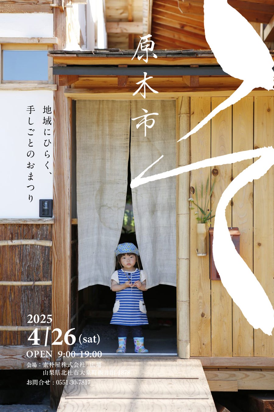 八ヶ岳南麓の木材を使った設計建築で日本の伝統技術を世界へ発信する工務店、素朴屋株式会社(山梨県北杜市/代表取締役:今井久志)は、今年も年に一度の素朴屋のおまつり「原木市(げんぼくいち)」を開催いたします。