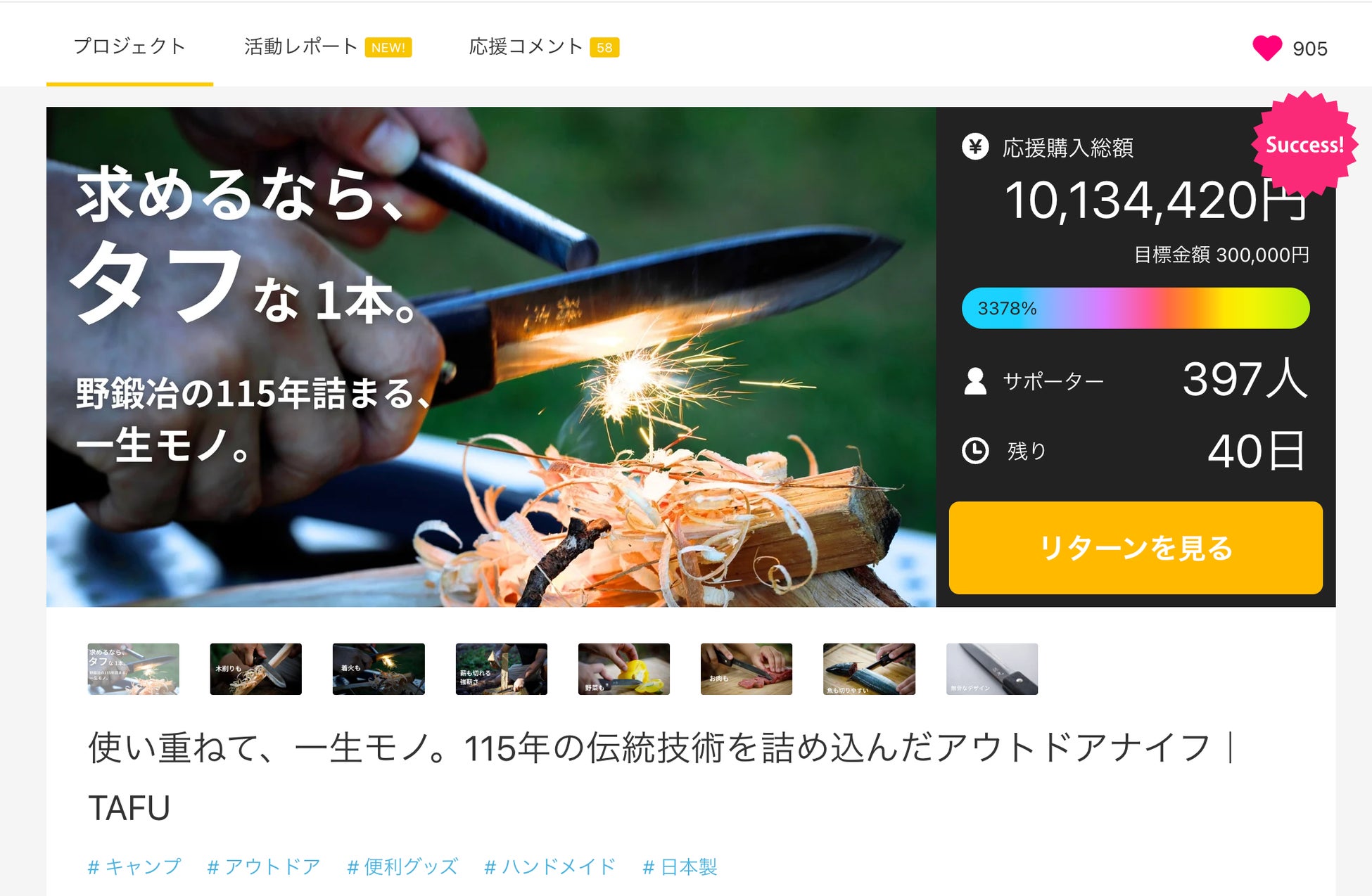伝統技術の集大成。これからのアウトドアナイフ「TAFU」|応援購入サービスMakuake1,000万円突破、次回1,500万円を目指したSNSキャンペーン
